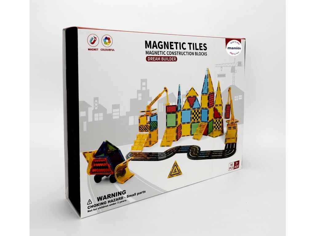 - Obsahuje: magnetické kostky, silniční dílky, dopravní značky, jeřáb, autíčka a další doplňky
