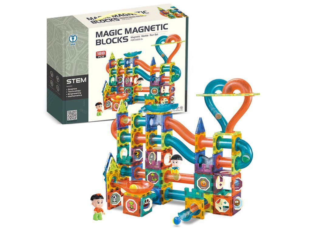 Magnetická stavebnice kuličková dráha 188 dílů