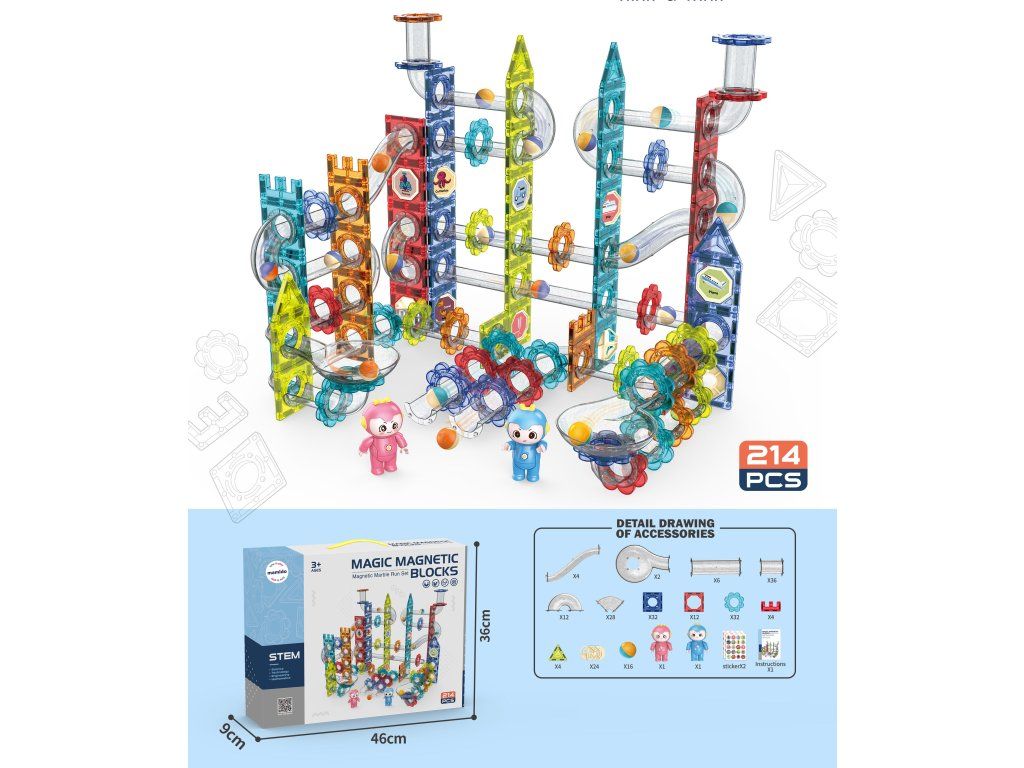 Magnetická stavebnice kuličková dráha 214 dílů XL