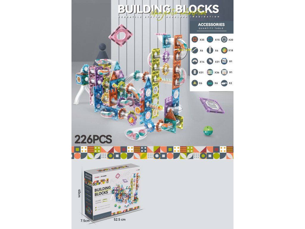 Fantastická magnetická stavebnice, která spojuje kreativní stavění s dynamickou kuličkovou dráhou! Set obsahuje 226 dílů různých tvarů, průhledných tubusů, oblouků, kol a magnetických panelů, díky kterým mohou děti vytvářet vlastní barevné konstrukce a sledovat, jak kuličky projíždějí po jejich originální trase.