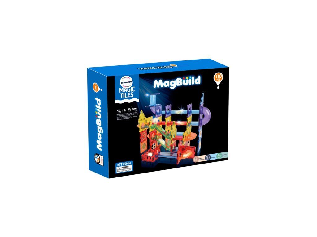 Stavebnice obsahuje různé tvary magnetických dílků, průhledné trubice, zatáčky, spojovací prvky i speciální doplňky. Díky tomu lze sestavit rozmanité stavby od jednoduchých konstrukcí až po složité dráhy s více úrovněmi. Barevné provedení navíc podporuje fantazii a rozvoj kreativity.