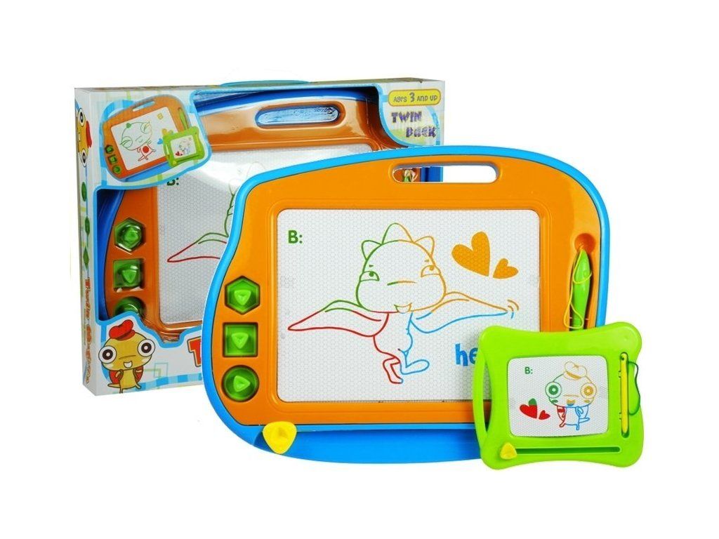 Hračka Magnetická kreslící tabule 2v1 obsahuje dvě tabulky - jednu větší a jednu menší. Kreslící magnetická tabule je univerzální a jednoduchá hračka pro všechny děti. Dítě se naučí estetickému cítění a rozvíjí své kreativní dovednosti. Sada se skládá z dvou kreslících tabulek, dvou stylus a 3 razítek.