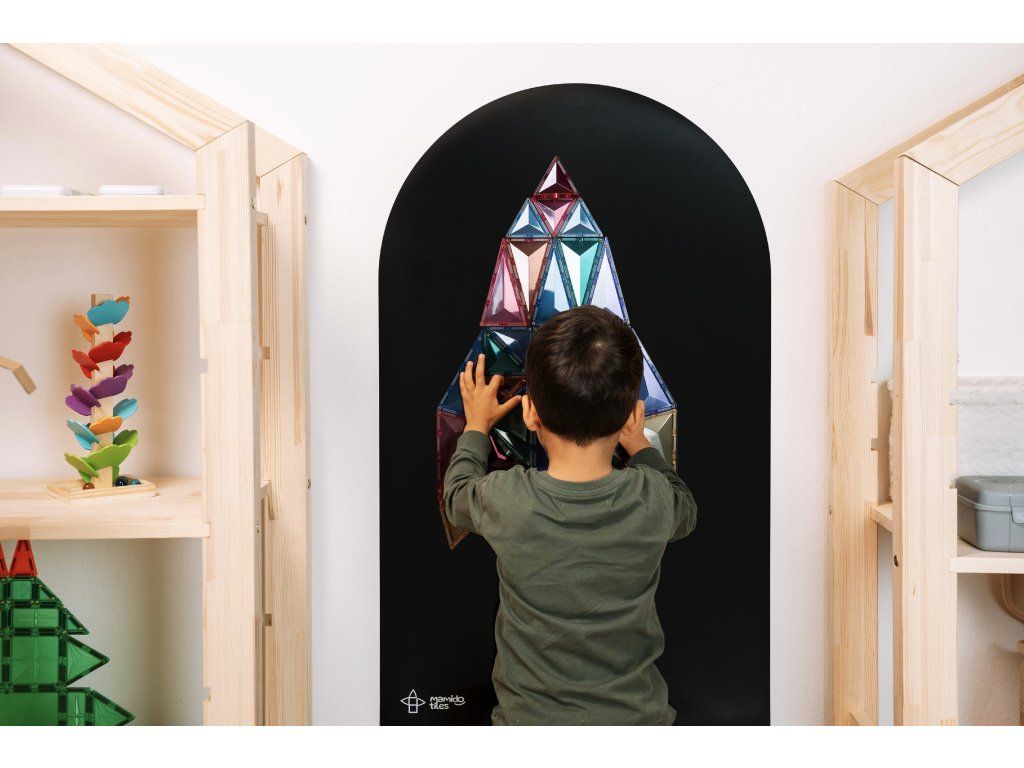 Magnetická tapeta Mamido Tiles přinese dětem ještě více zábavy, tvoření a učení díky magnetické síle a snadné instalaci. Stačí ji nalepit na hladkou stěnu a během okamžiku vznikne interaktivní prostor pro magnetky, kreslení křídou, malování omyvatelnými barvami i psaní fixem na tabule.
