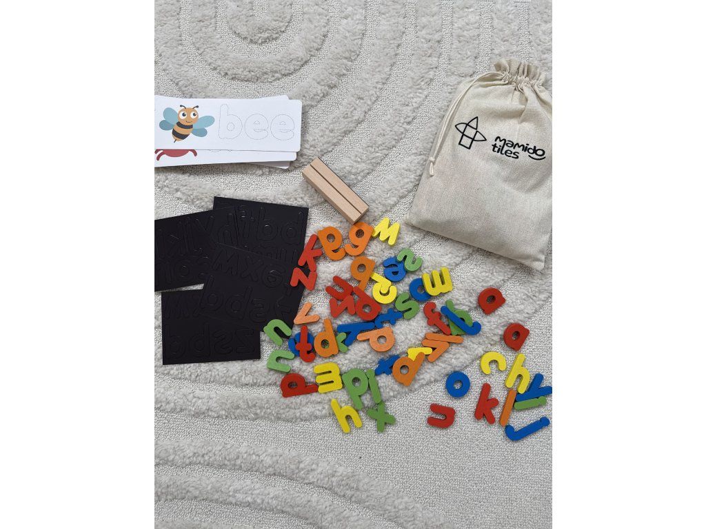 Celá sada je uložená v praktických textilních sáčcích, takže máš jistotu, že písmenka ani kartičky nezmizí a mohou s tebou cestovat kamkoli.