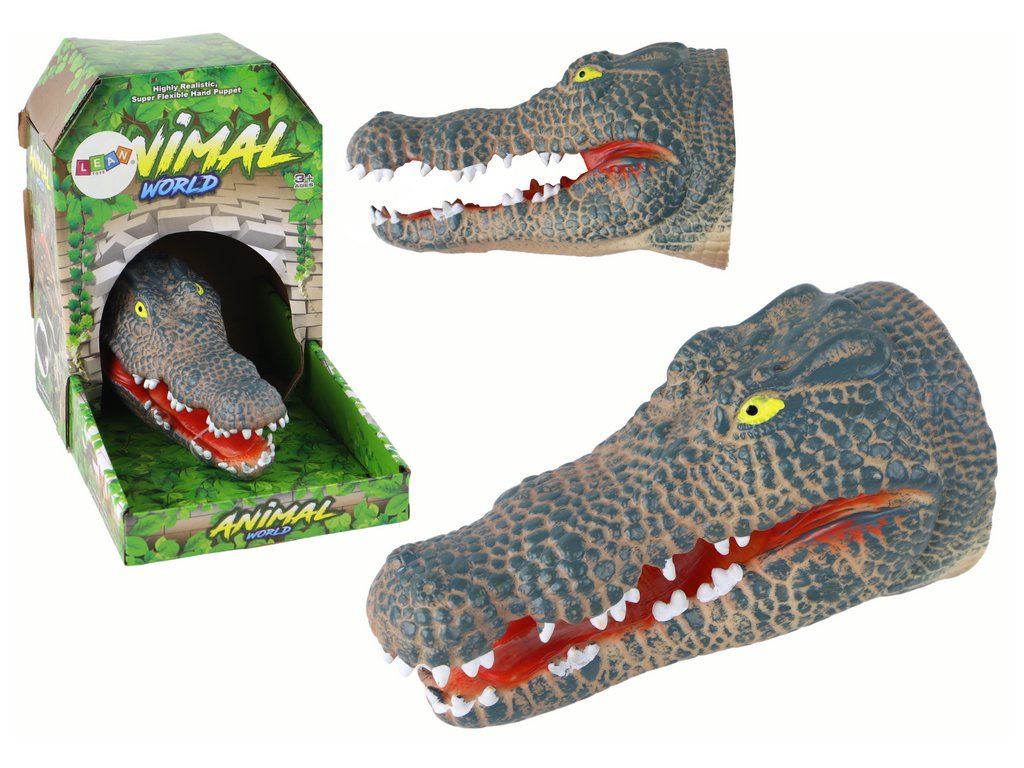 Krokodýl má charakteristické žluté oči, které mu dodávají autentický výraz a působí jako živý tvor. Jedním z nejcharakterističtějších prvků jsou šupiny na jeho těle, které byly pečlivě reprodukovány a dodávají loutce autentický vzhled.