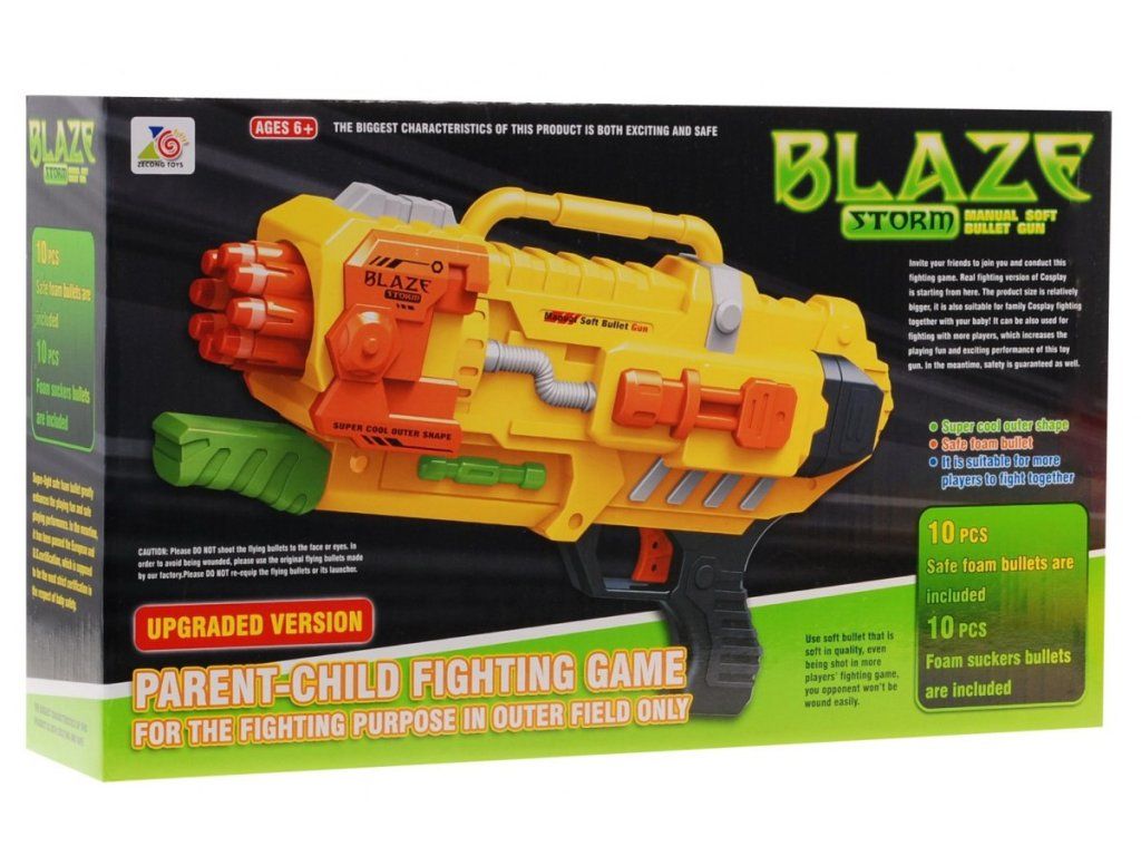 Rychlá a přesná pistole pro děti, která je nabíjena 10 pěnovými projektily, které nikomu neublíží. Jsou měkké a tupé, nehrozí tedy žádné zranění. Pistole střílí až do vzdálenosti 10 m. Pistole je příruční, lehká a odolná. Pod spouští má zásobník na 4 střely. S touto pistolí se dítě nudit nebude, uspořádejte pořádnou střílečku u Vás doma, jistě se zapojí i tatínkové a vrátí se do dětských let spolu se svými syny. V nabídce máme více druhů pistolí značky Blaze Storm.