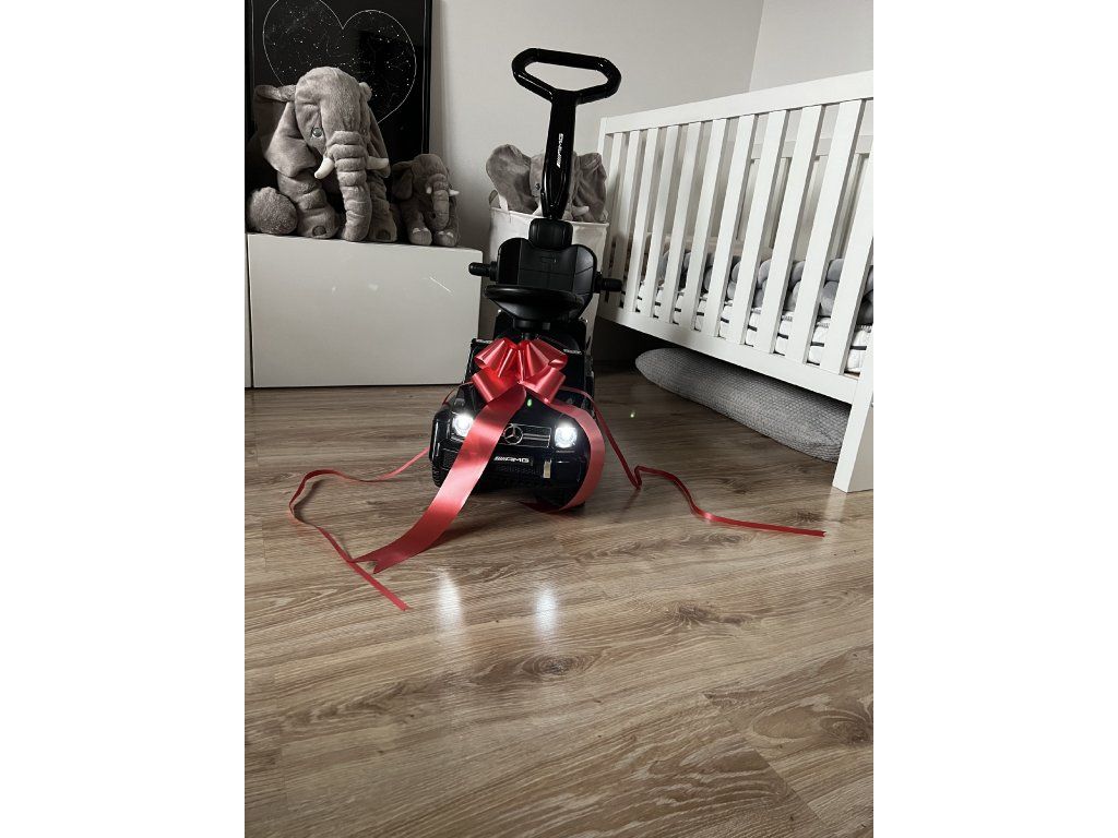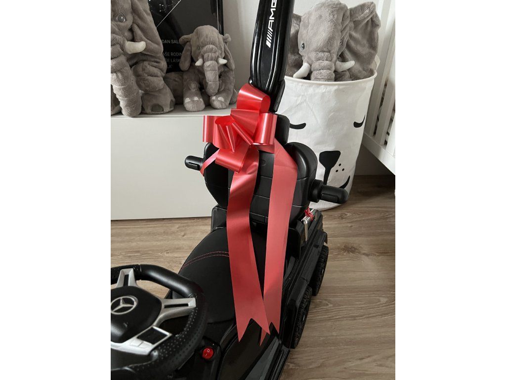Mašli snadno připevníte na elektrické autíčko či jiný dárek a pak už stačí jednoduše předat překvapení oslavenci.