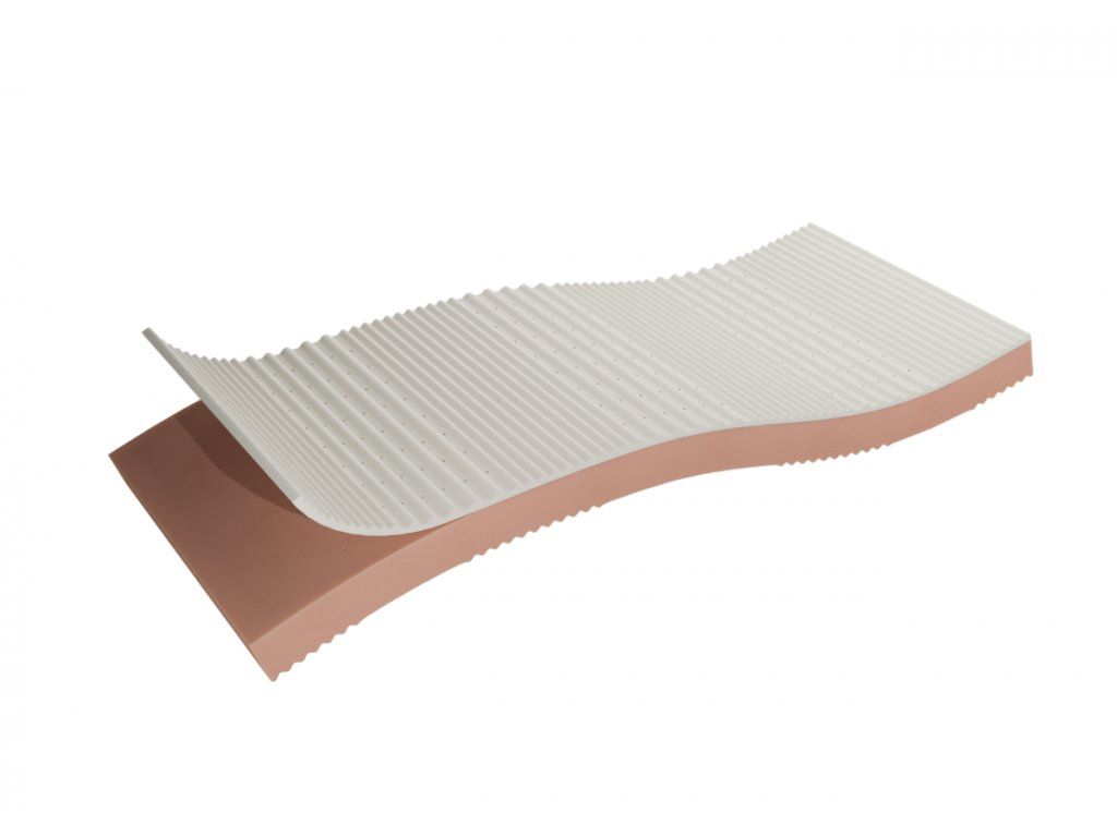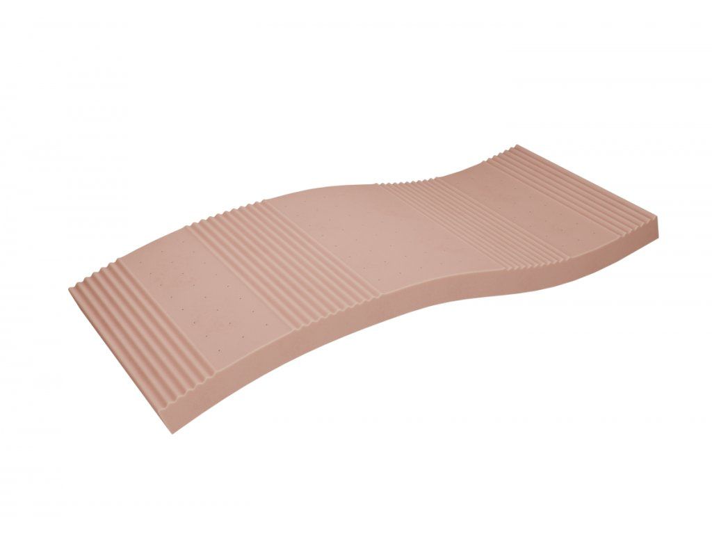 Použitá pružná pěna byla na jedné straně jemně profilovaná po zónách, což zajišťuje lepší přizpůsobení a podporu těla.
