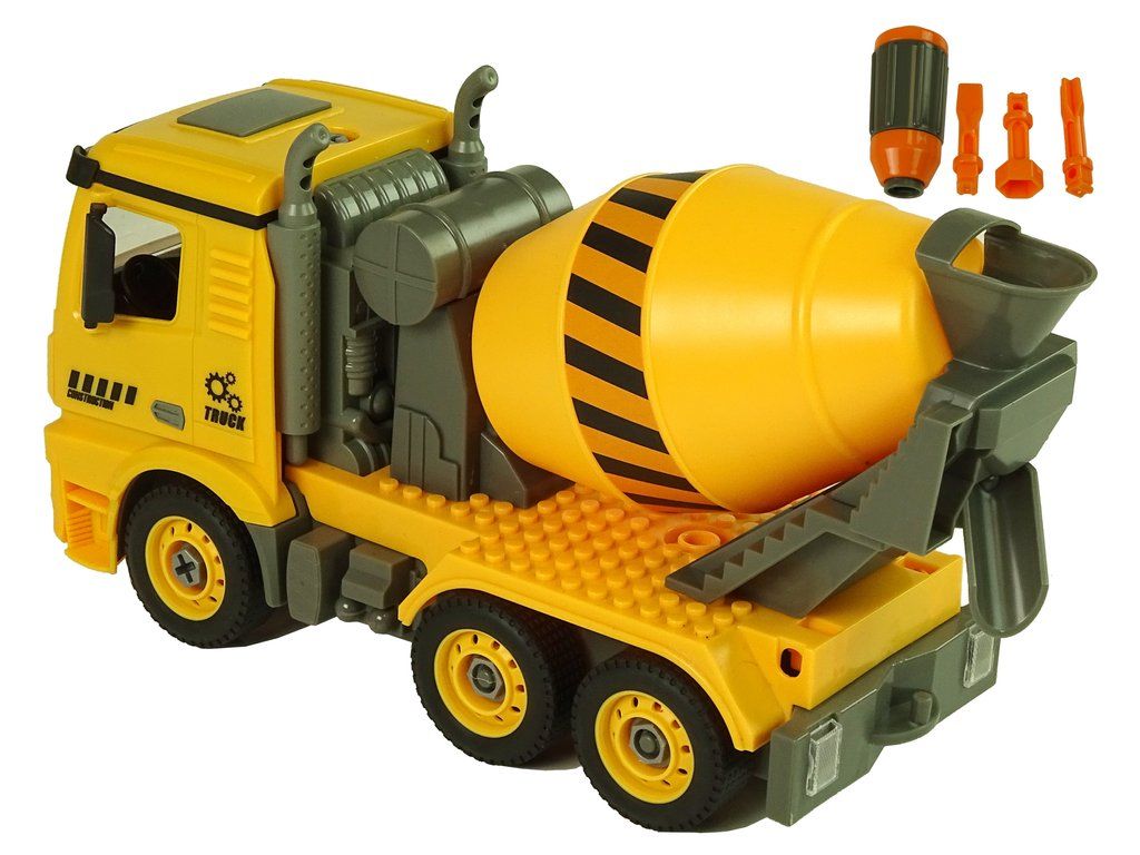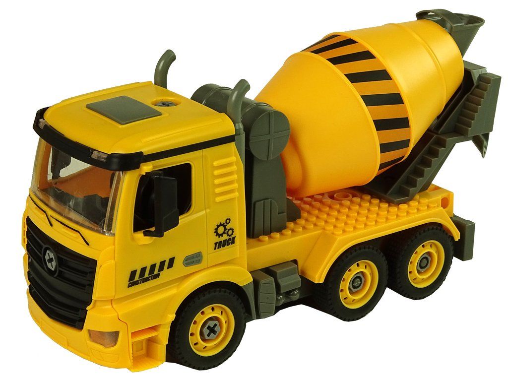 Největší výhodou setu je možnost dálkového ovládání. Motor obsažený v sadě má dvě funkce. Montáží na šroubovák vám umožní pohrát si s jeho rozebíráním a instalací do míchačky betonu jej můžete ovládat. Přiložený dálkový ovladač ve tvaru šroubováku pracuje na frekvenci 2,4 GHz a umožňuje jízdu vpřed/vzad. Sada je vyrobena v měřítku 1:14, žlutá a šedá.