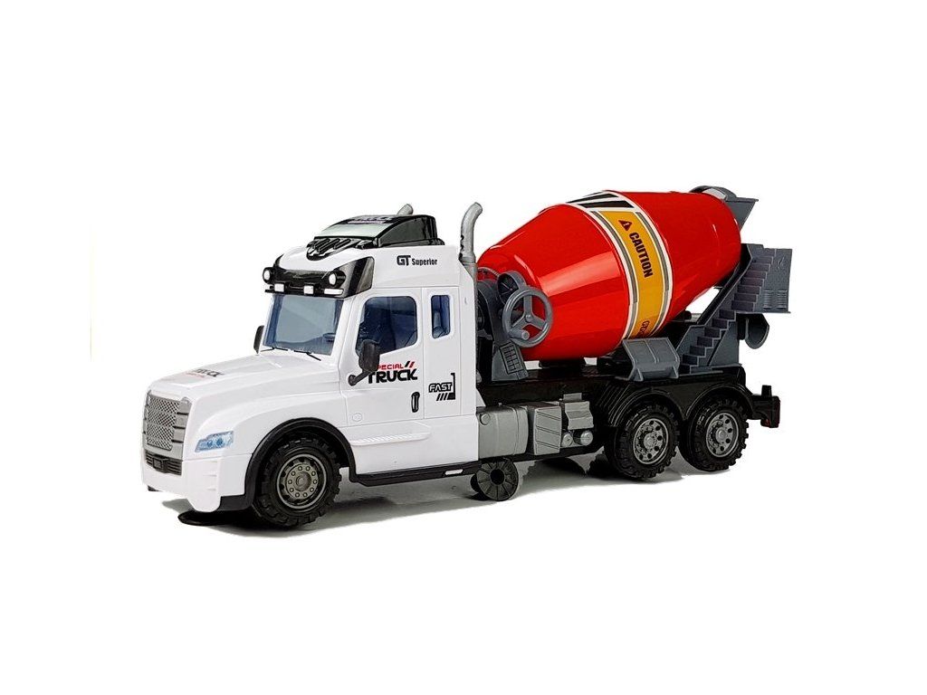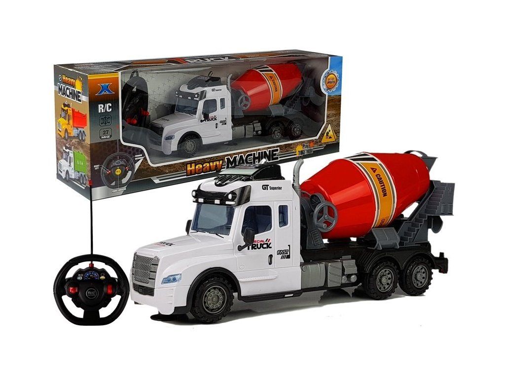 Dálkově ovládaná míchačka je vyrobena z nejkvalitnějších materiálů s největší přesností do detailů. Míchačka na beton je zdobena černými a červenými prvky. Sada obsahuje dálkové ovládání a s jeho pomocí lze jezdit ve všech směrech.
