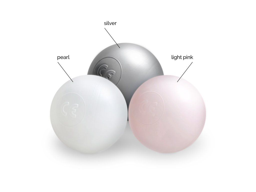 Míčky do suchého bazénu Ø 6 cm 200 ks (perleťové, stříbrné, perleťově světle růžové)