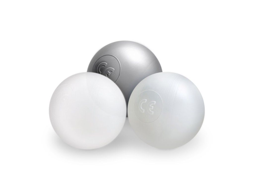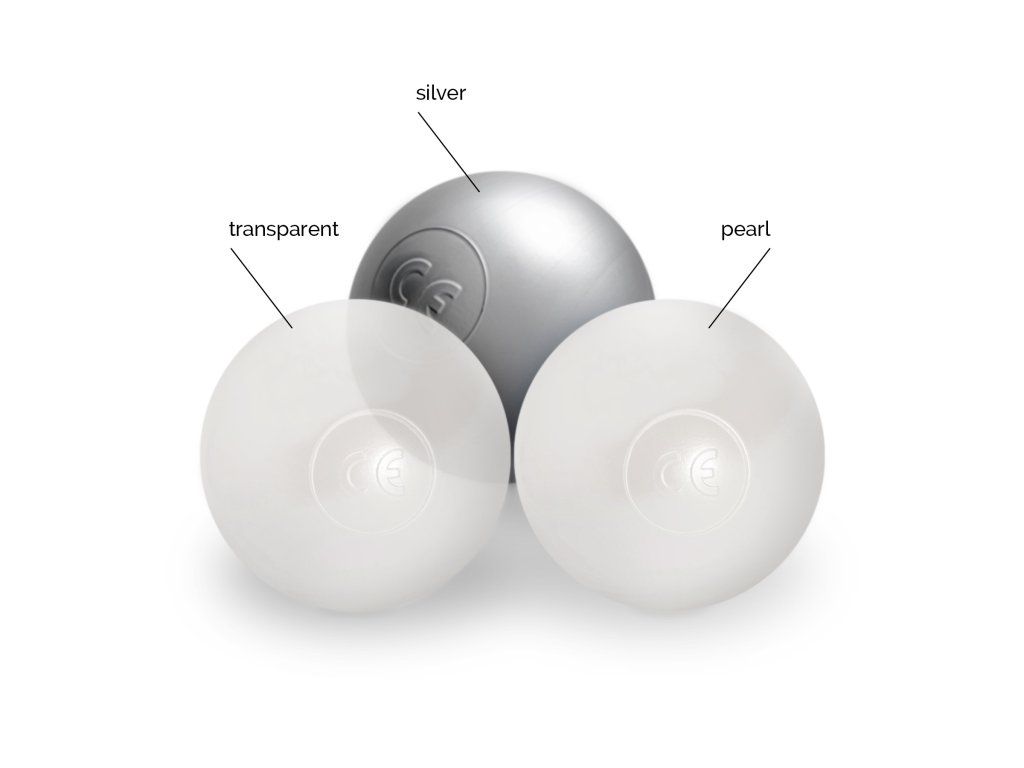 Míčky do suchého bazénu 200 ks (Ø 6 cm, perleťové, průhledné, stříbrné)