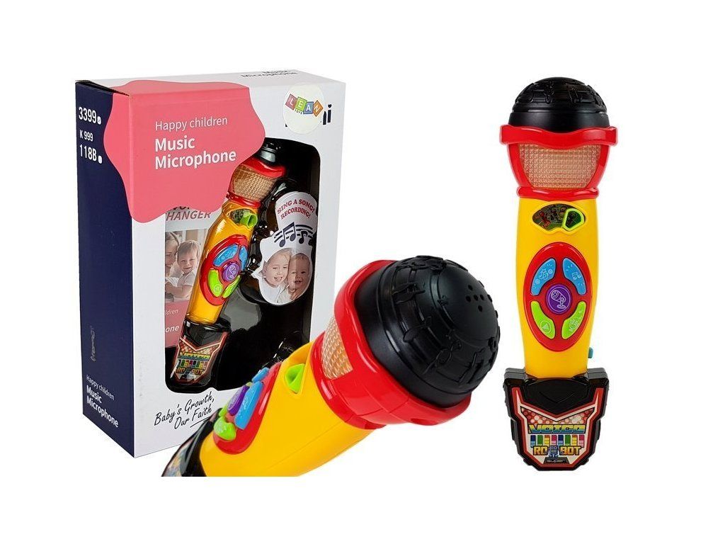 Dětský mikrofon je snadně uchopitelný do rukou, a tak se děti při zpěvu mohou volně pohybovat. Děti si mohou vybrat melodii a také hlas, který pro ně bude nejsympatičtější. Vzhled mikrofonu je doplněný světelnými efekty a už jen doladí dětem jejich pěvecké vystoupení.