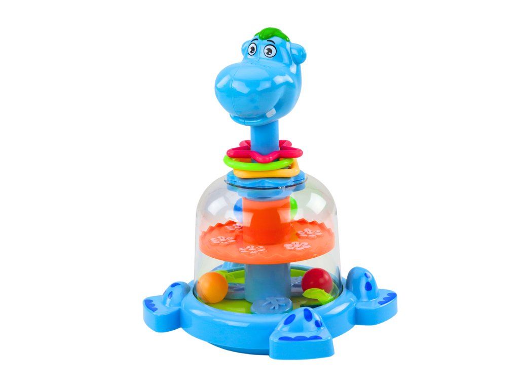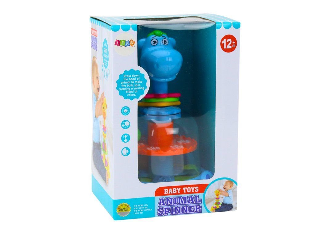 Poznej barevného hrocha, který dětem přináší hodiny radostného hraní a objevování. Stisknutím hroší hlavy se roztočí pohyblivé kolo v jeho bříšku, čímž rozpohybuje čtyři barevné kuličky a vytvoří fascinující podívanou.
