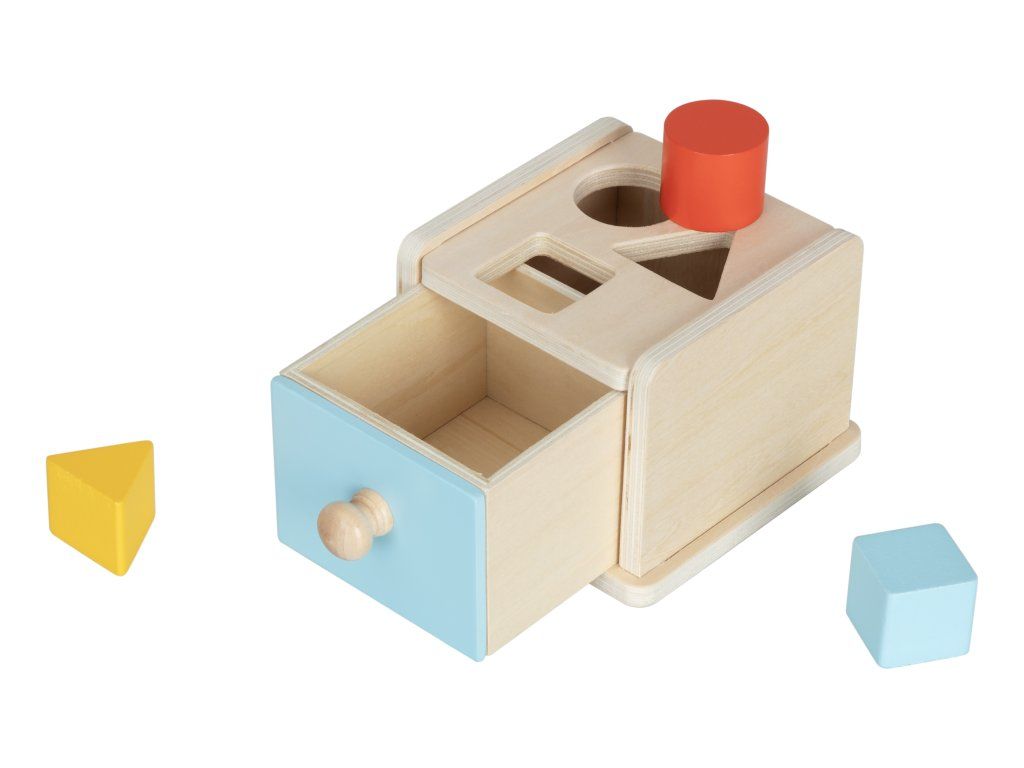 - Umožňuje dětem vkládat předměty a objevovat koncept trvalosti objektů.