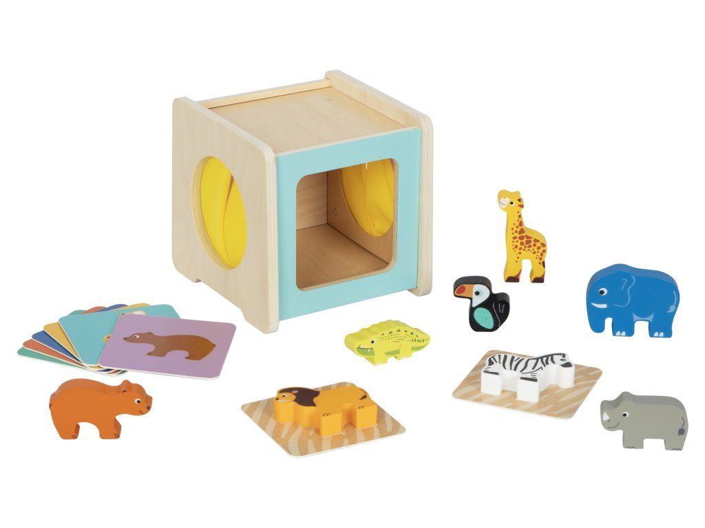 - Materiál: Dřevo, textil, plast (bez BPA)