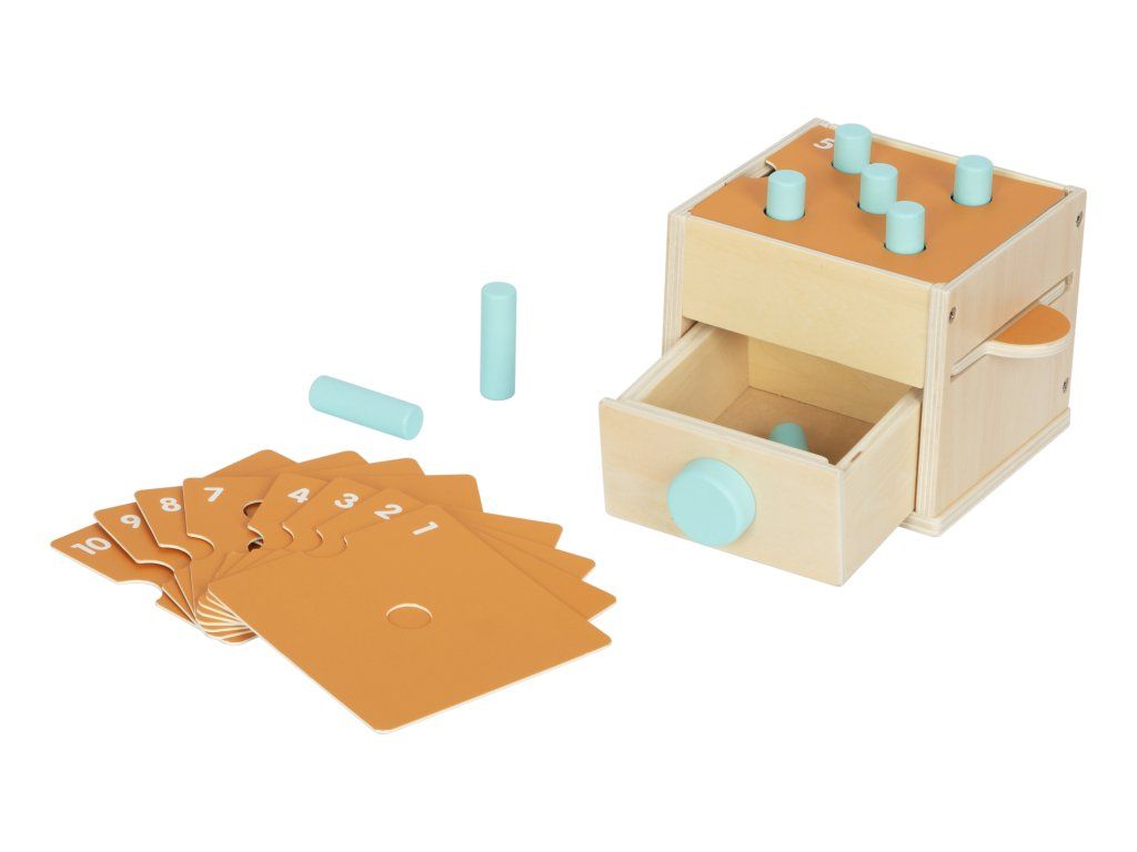 - Materiál: Dřevo, textil, plast (bez BPA)