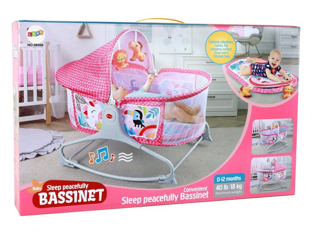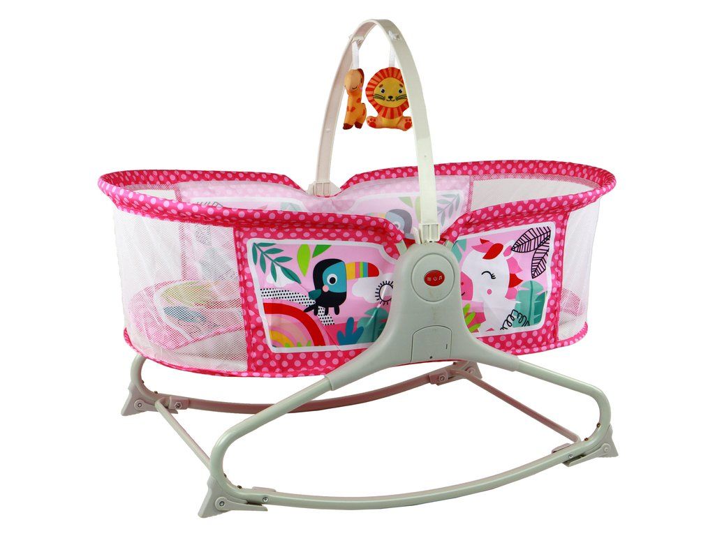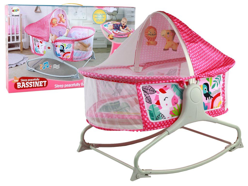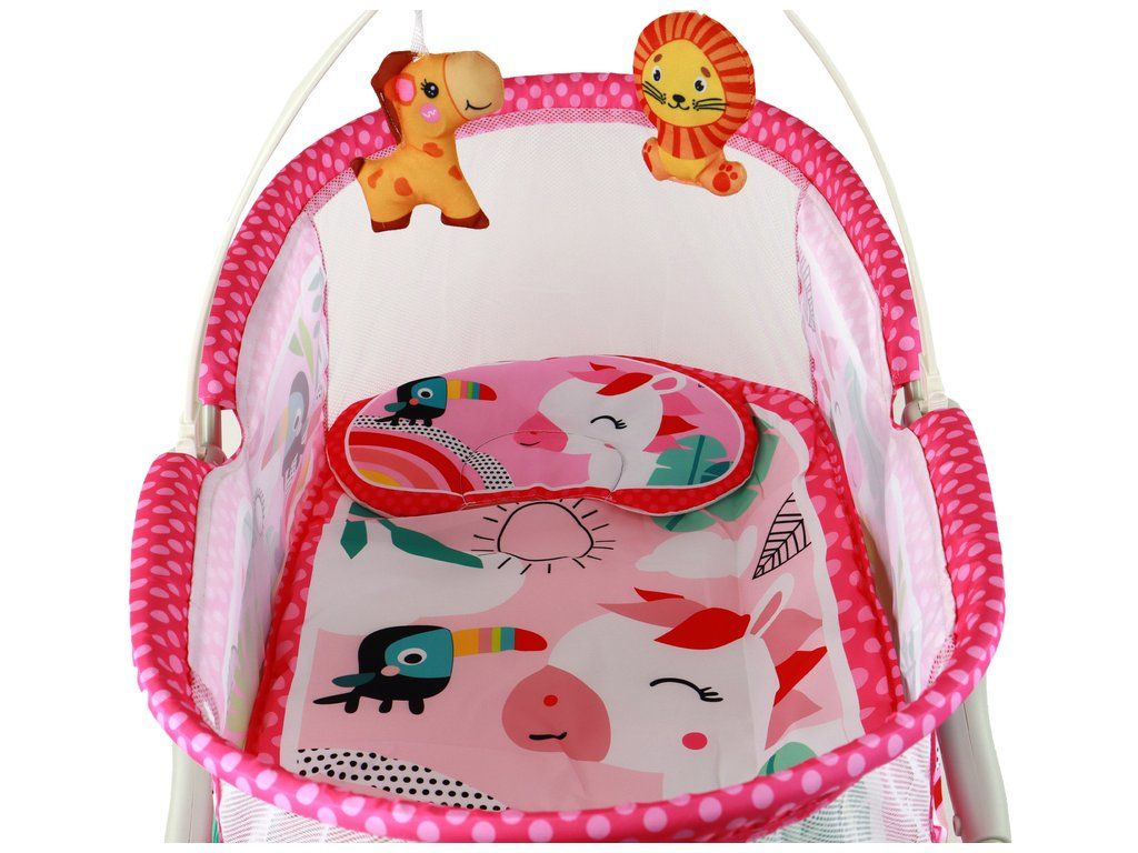 Multifunkční houpací postýlka 2v1 s podložkou a vibracemi růžová
