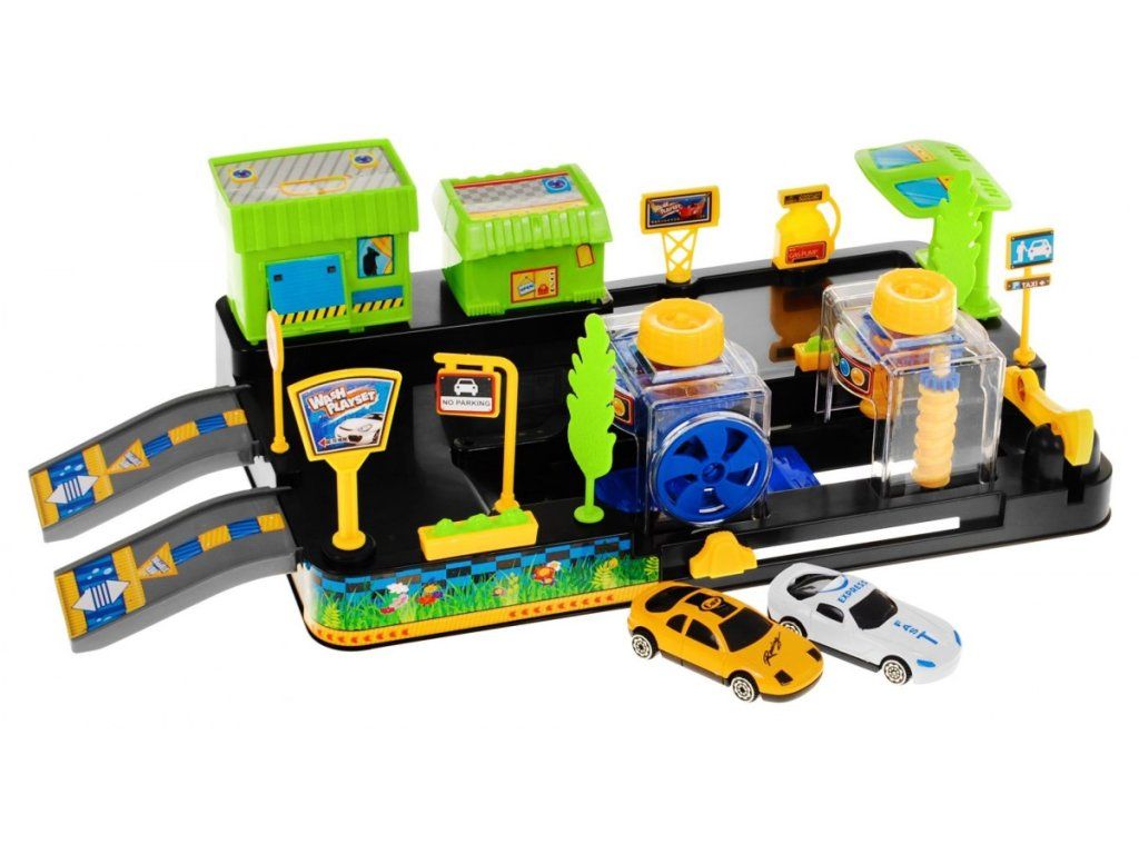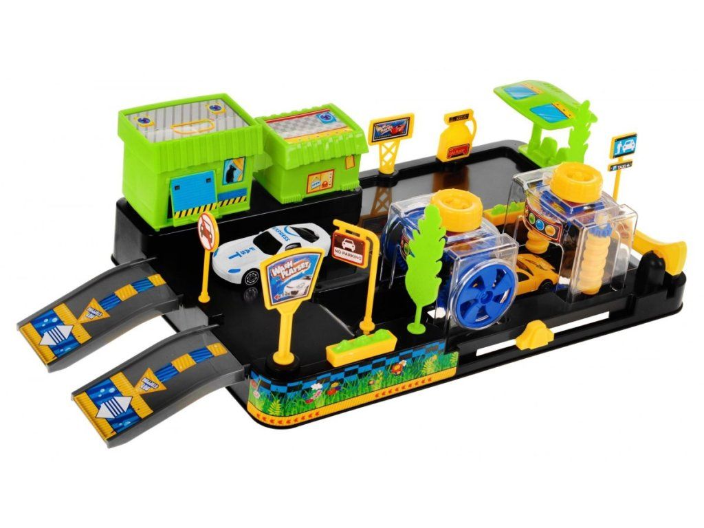 Tato skvělá autodráha s myčkou Vás jistě nebude nudit. V sadě se nachází také 2 autíčka. Na dráze jsou pohyblivé části.
