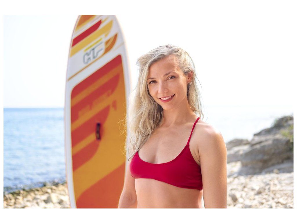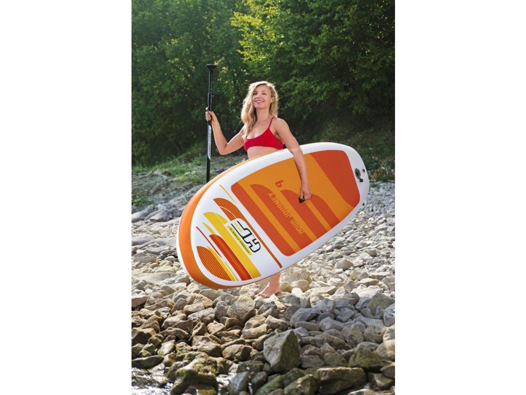 Kvalitně zpracovaný paddleboard s protiskluzovým povrchem a pružným surfovým vodítkem. Paddleboard se velmi snadně používá a snadno se pumpuje ruční pumpou.