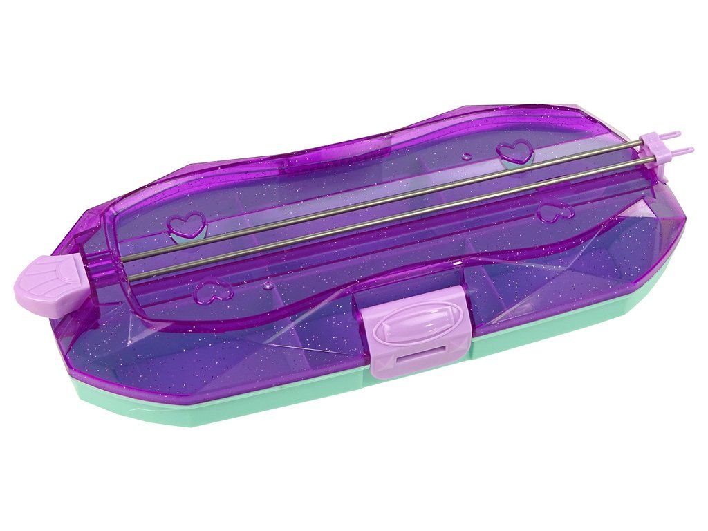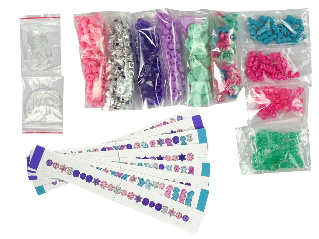 - Provázky navléknete na přístroj, poté navléknete korálky jeden po druhém, stáhnete a náramek je hotový.