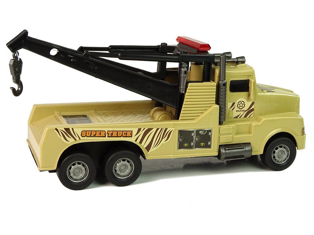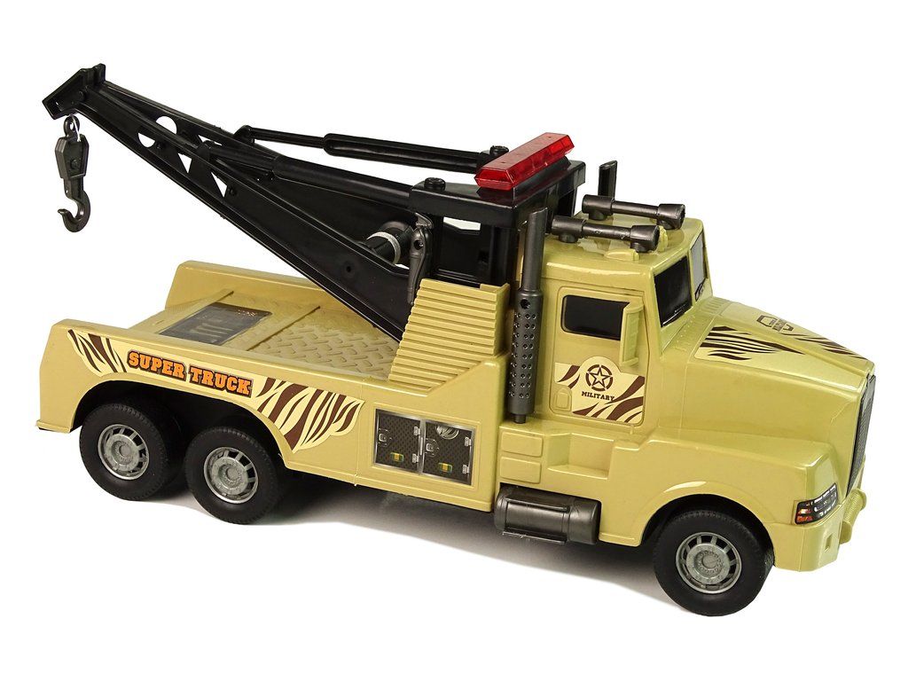 Každý detail je dokonale reprodukován. V zadní části vozu je jeřáb s tažným lanem a na úplném konci je háček, stačí připojit další hračku a převézt ji na správné místo. Další výhodou je navíjecí tažné lano pomocí kliky na boku vozu a třecí pohon.