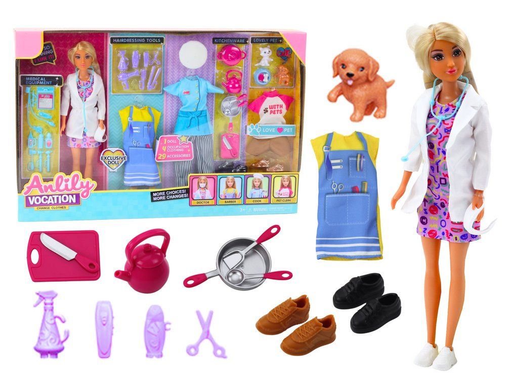 Panenka Anlily nabízí dětem skvělou příležitost rozvíjet kreativitu a představivost prostřednictvím hraní různých rolí. Panenka Anlily s dlouhými blond vlasy přichází s čtyřmi unikátními uniformami a doplňky, díky kterým může být paní doktorkou, kadeřnicí, kuchařkou nebo milovnicí zvířat.