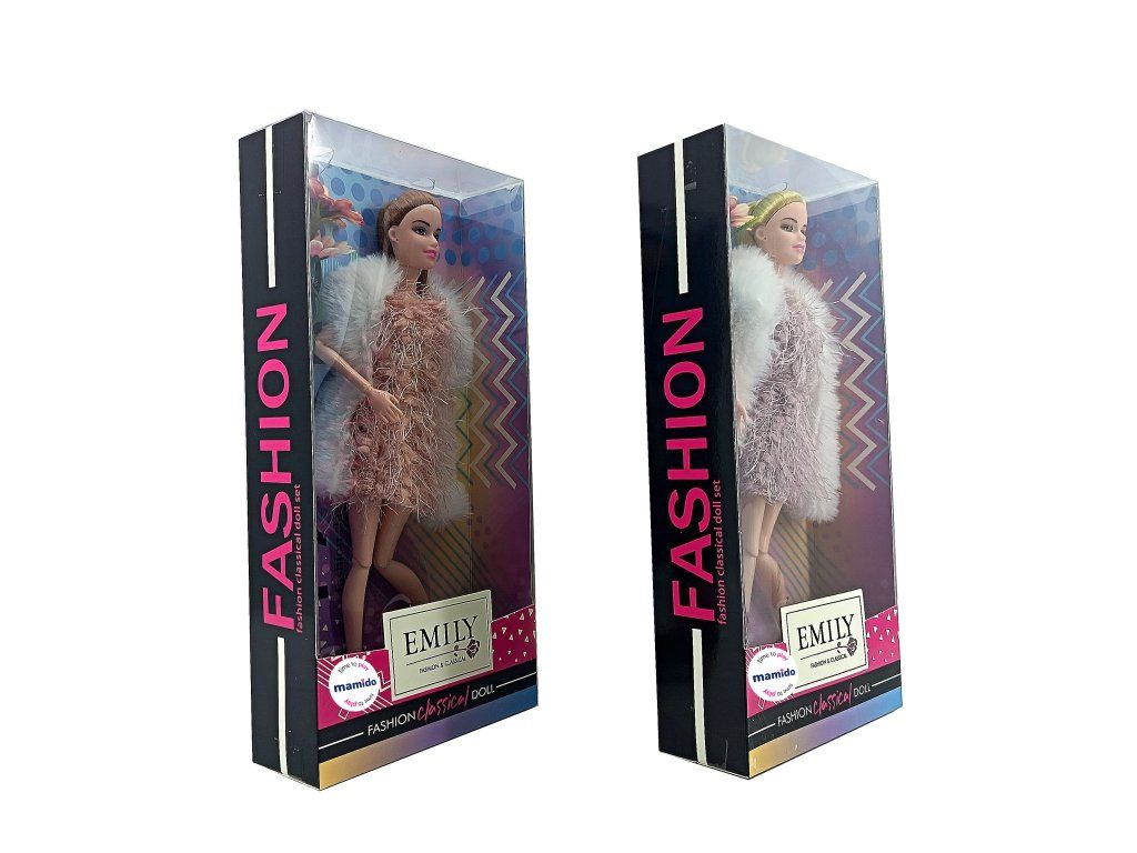 Panenka Emily z klasické série okouzlí svým módním vzhledem a pohyblivými klouby, které umožňují přirozené pózování. Je oblečená do stylových šatů s kožešinovým přehozem a je připravena stát se hvězdou každé dětské hry. Skvělá volba pro malé módní návrhářky a sběratelky panenek.