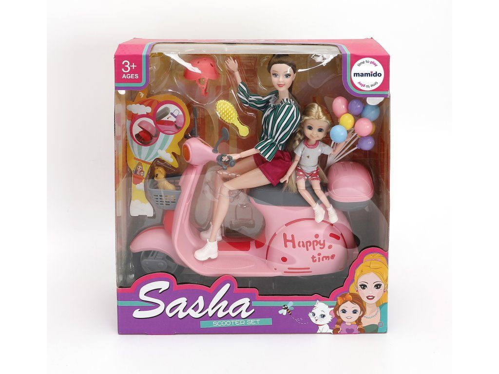 Panenka máma brunetka s dcerou blondýnkou se skútrem a doplňky 30 cm Sasha