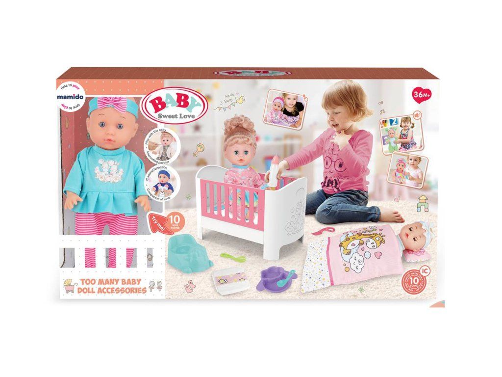 Panenka miminko s postýlkou a doplňky Baby Sweet Love MT1597