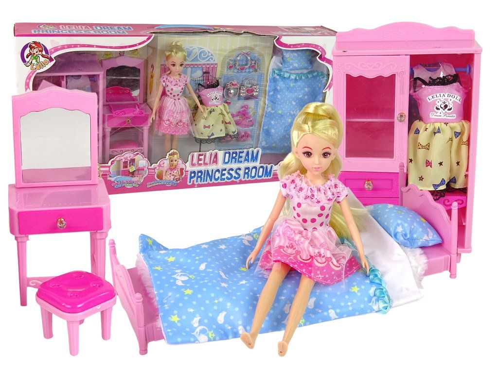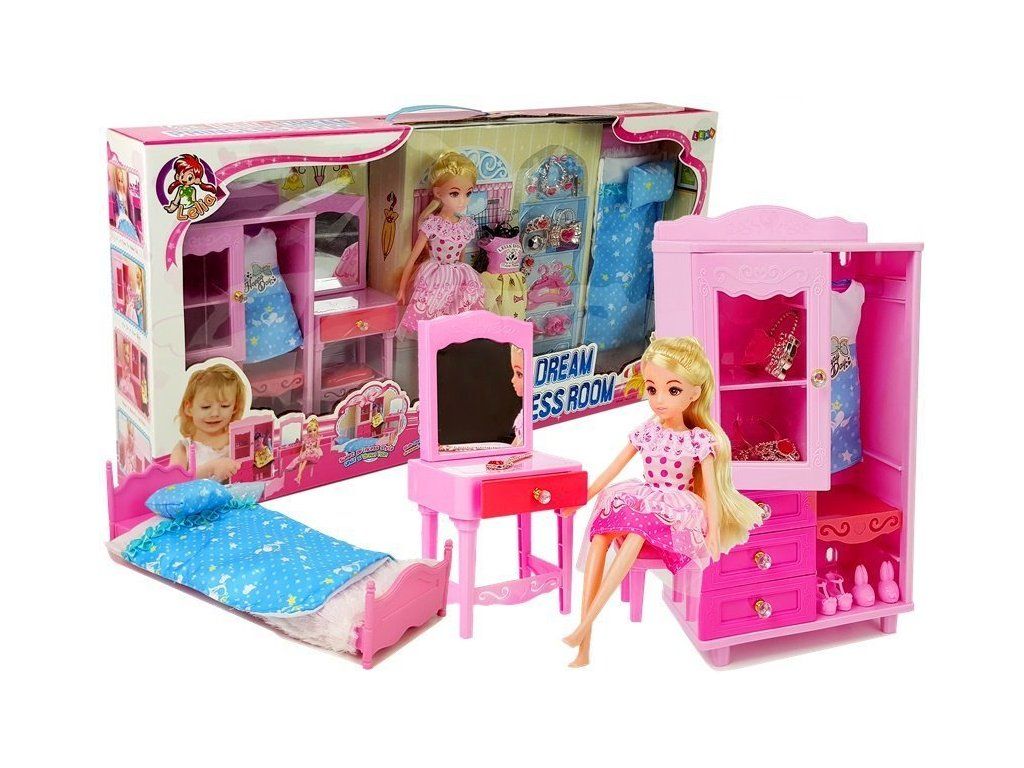 | Obsah balení: | Panenka, Šaty, Boty, Skříň, Šperky, Toaletní stolek, Postel |