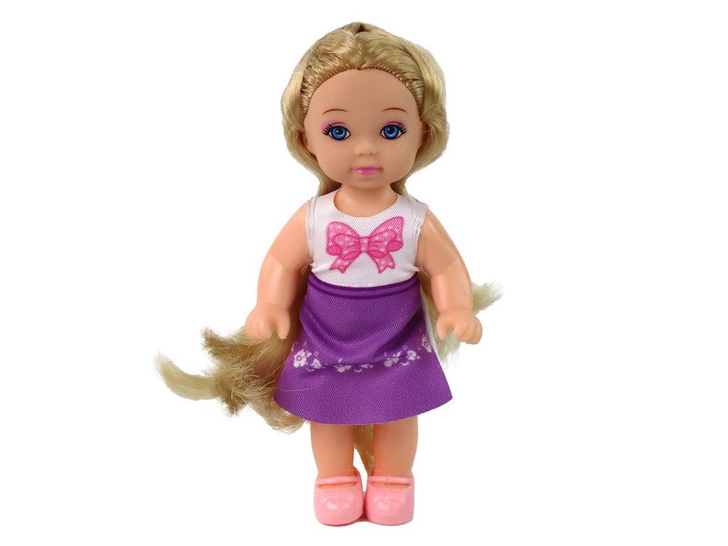Malá panenka představuje školačku, má na sobě půvabné bílé a fialové šaty s mašlí. Na nohou má růžové boty. Studentka má dlouhé blond vlasy, které se dají sepnout a učesat.
