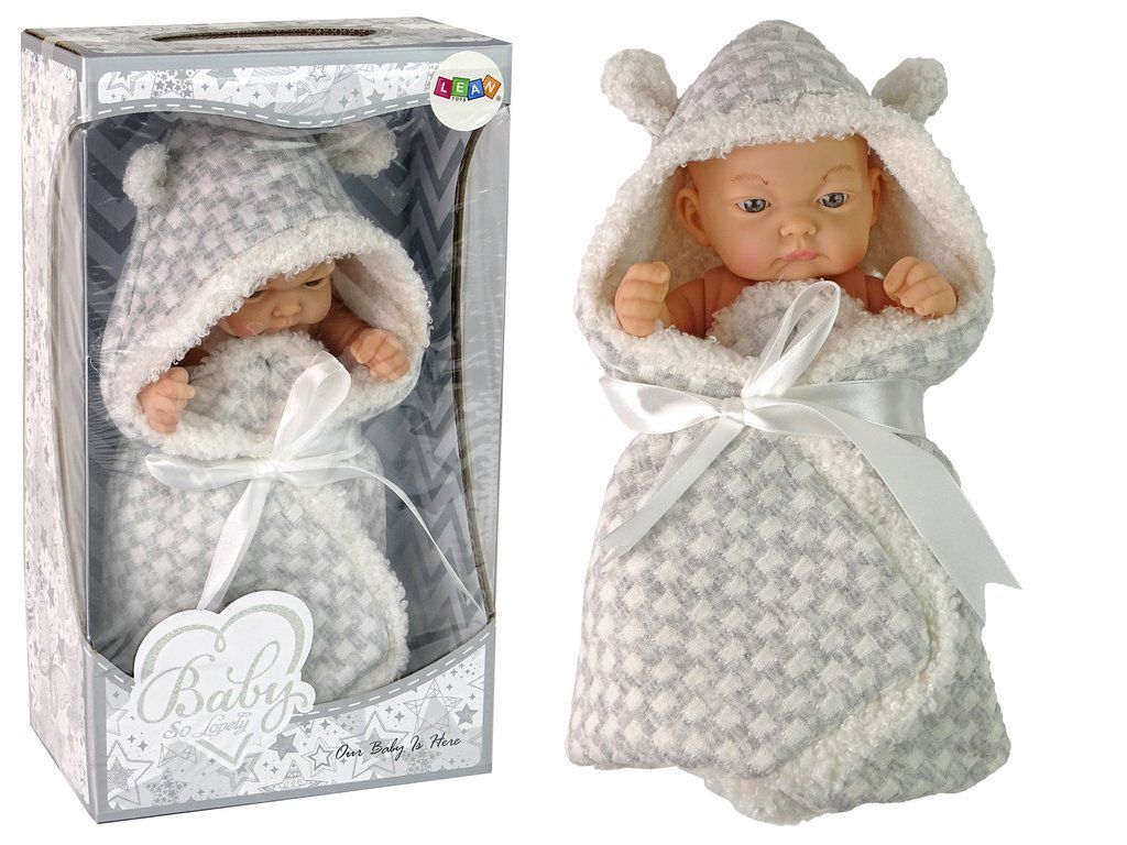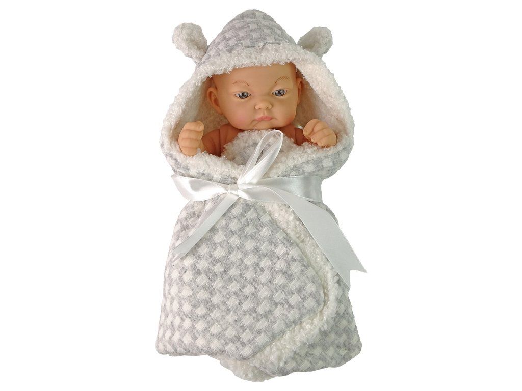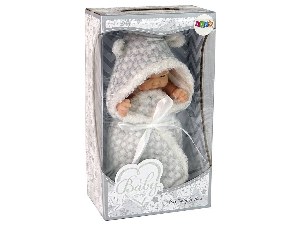 Mnoho dívek sní o své panence, o kterou se budeme moct starat jako o vlastní miminko. Panenka je zavinuta v šedé zavinovačce s bílou mašlí. Panenka má pohyblivé ruce.