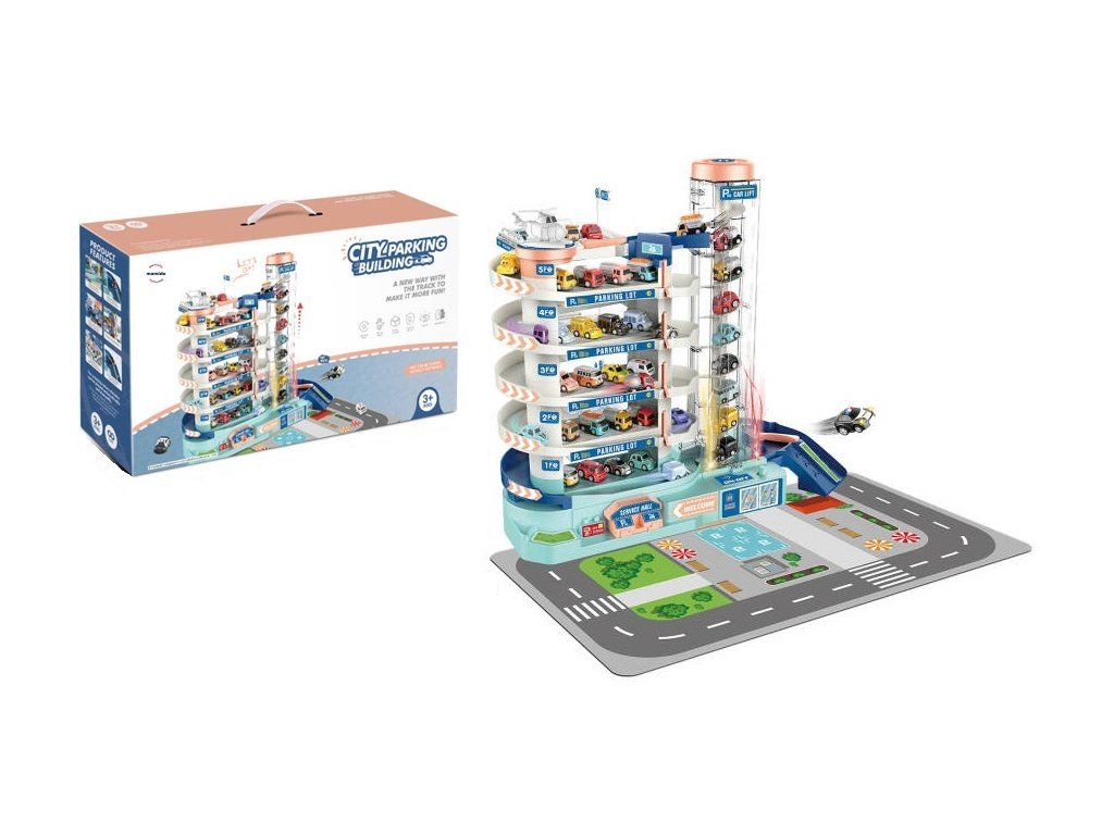 Objevte svět plný dobrodružství a zábavy s patrovým parkovištěm, které potěší každého malého řidiče. Barevné autíčkové parkoviště nabízí hned několik pater pro parkování, funkční výtah pro auta, servisní zónu i prostor pro tankování. Součástí je také hrací podložka se silnicí, která dětem umožní vytvářet realistické dopravní situace a rozvíjet jejich fantazii.