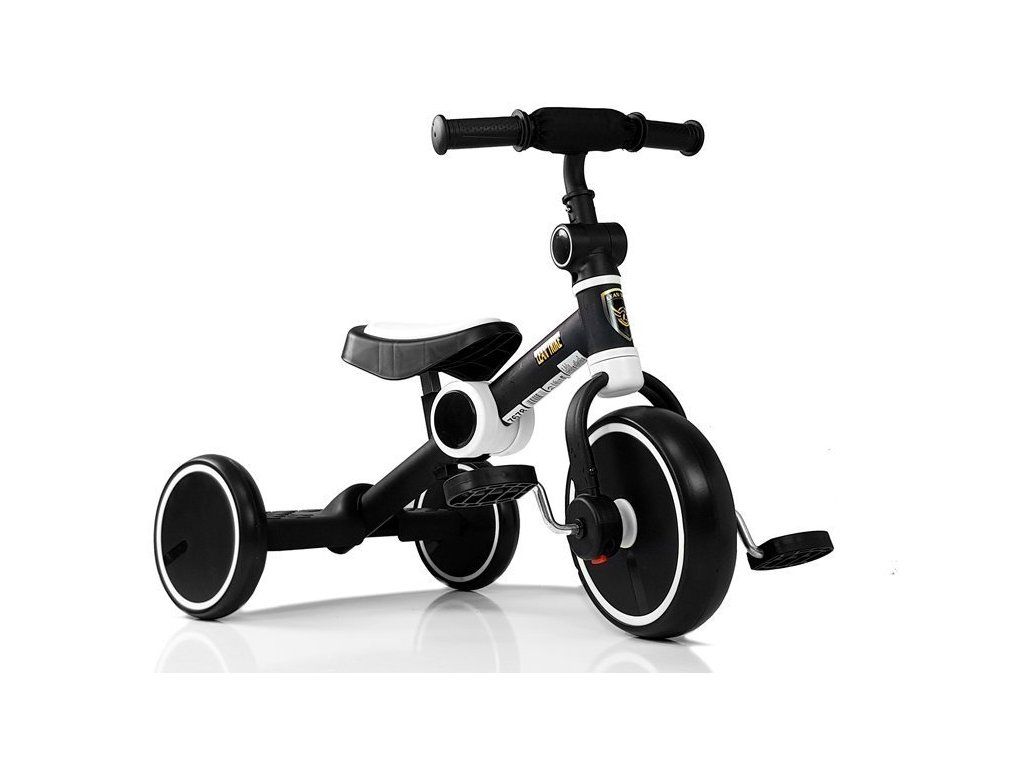 Dětská tříkolka a odrážedlo 2v1 černobílá