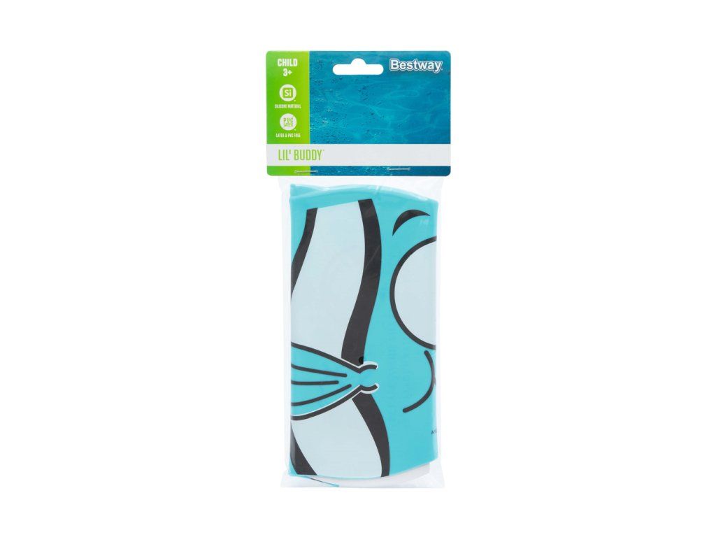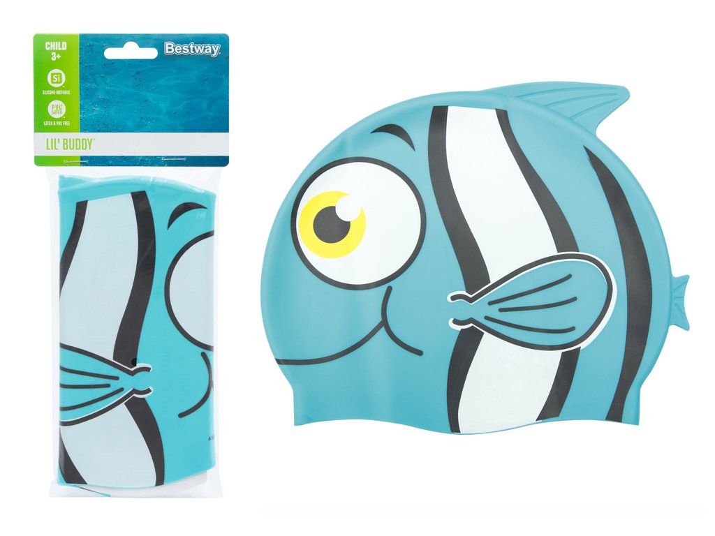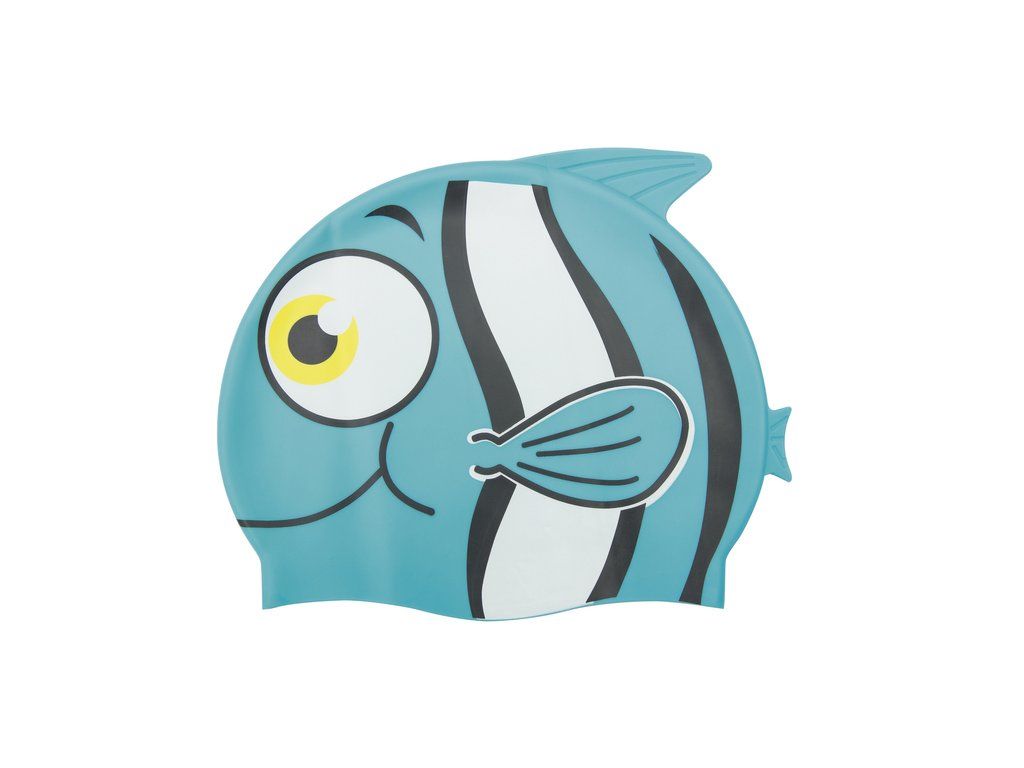 Tato plavecká čepice je vyrobena z odolného silikonu, dokonale padne a ochrání vlasy a uši při plavání. Její jedinečný design ve tvaru usměvavé modré rybky s plandajícími ploutvemi a ocasem jistě potěší nejmenší.