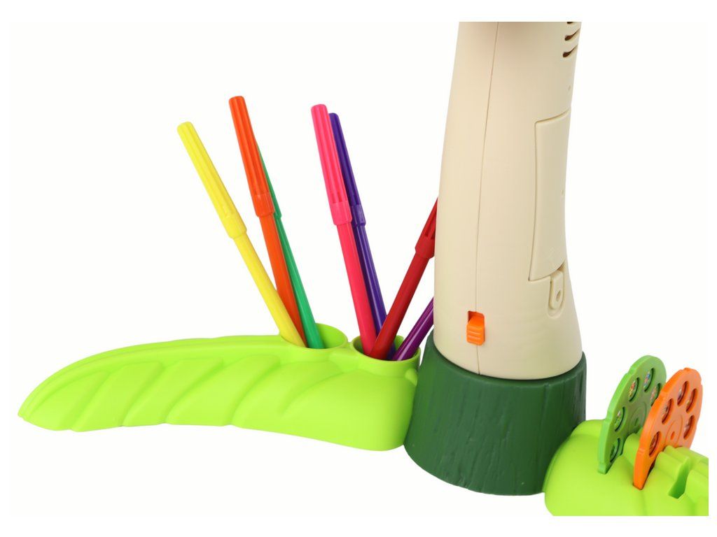 Projektor má roztomilý tvar dinosaura, který přitahuje pozornost dětí. Tím však jeho zábava nekončí – jeho hlava je pohyblivá, což umožňuje dětem přizpůsobit si výšku projekce svým potřebám a preferencím. Je vybaven i zvukovou funkcí, která dětem zpříjemní kreslení.