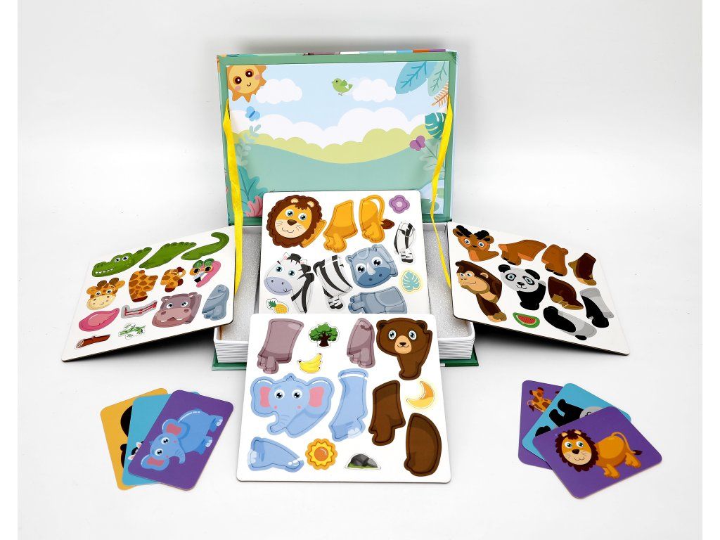 Objevte kouzlo skládání a tvoření se zábavnou magnetickou knihou se zvířátky! Děti si mohou poskládat roztomilé zvířátko podle předlohy, nebo popustit uzdu fantazii a vytvořit vlastní originální kombinace.