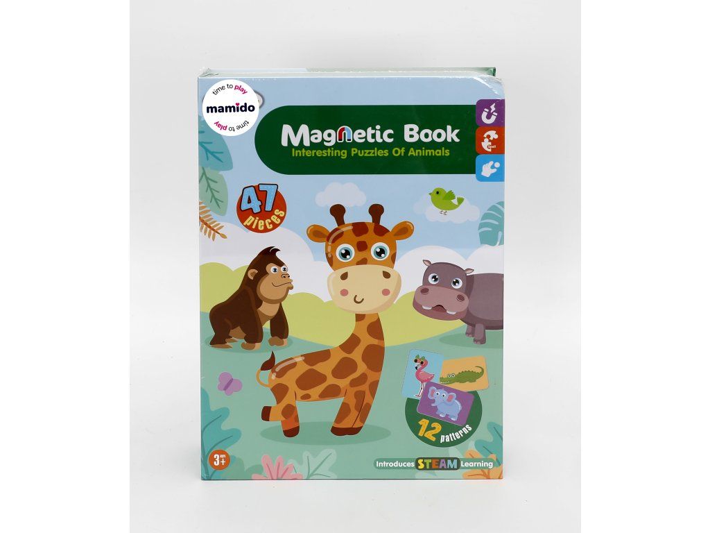 Součástí balení je 47 magnetických dílků a 12 vzorových karet, které děti provedou skládáním krok za krokem. Díky praktickému knižnímu provedení je hračka snadno přenosná a ideální na cesty – vše se ukládá přímo do pevného obalu ve tvaru knihy.