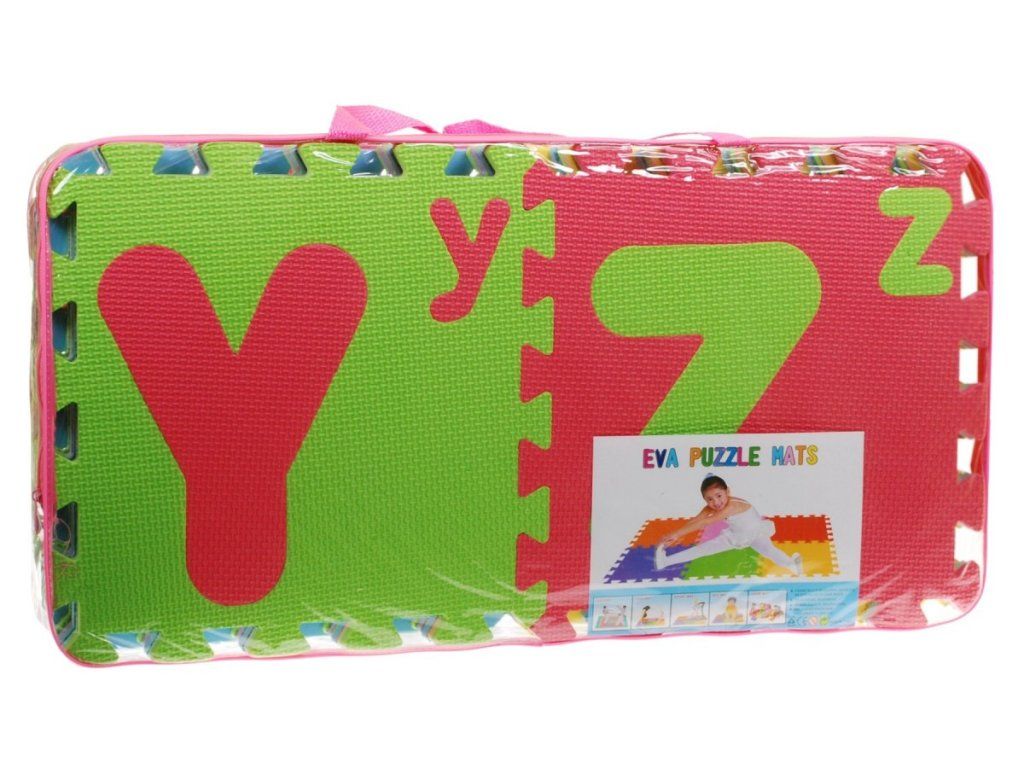 Abecední sada obsahuje 26 různých barevných puzzlí. Puzzle jsou vyrobeny z měkké, snadno spojitelné a na dotek příjemné pěny. Můžou sloužit jako rohožka pro sportovní cvičení, puzzle nebo taky jako koberec do dětského pokojíčku. Každý prvek má velké a malé písmeno, které lze vytáhnout a získat další dílky. Tyto skládanky nenasakují vodu, proto se snadno čistí. V případě nečistot je jednoduše otřete navlhčeným hadříkem. Podlahové puzzle jsou také vhodné pro procvičování abecedy.