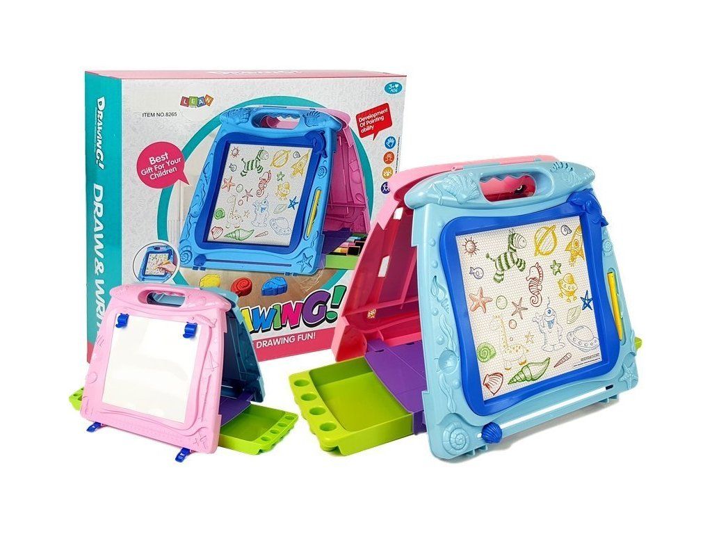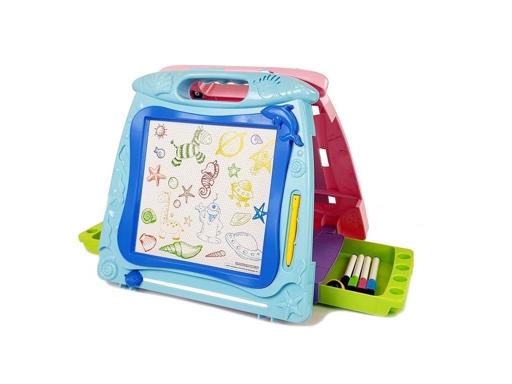 Multifunkční tabule s možností kreslení z obou stran udělá radost každému malému dítěti, které rádo kreslí, a navíc může ke hře přizvat svého kamaráda. Na jedné straně tabule můžete kreslit fixami, zatímco na druhé straně můžete použít přiložený stylus. Kresby lze snadno odstranit pomocí posuvníku ve spodní části. Kromě toho jsou vybaveny 2 zásuvkami, vysouvacími na boku, do kterých lze uložit přiložené předměty.