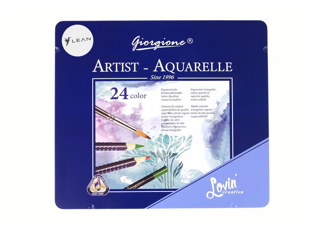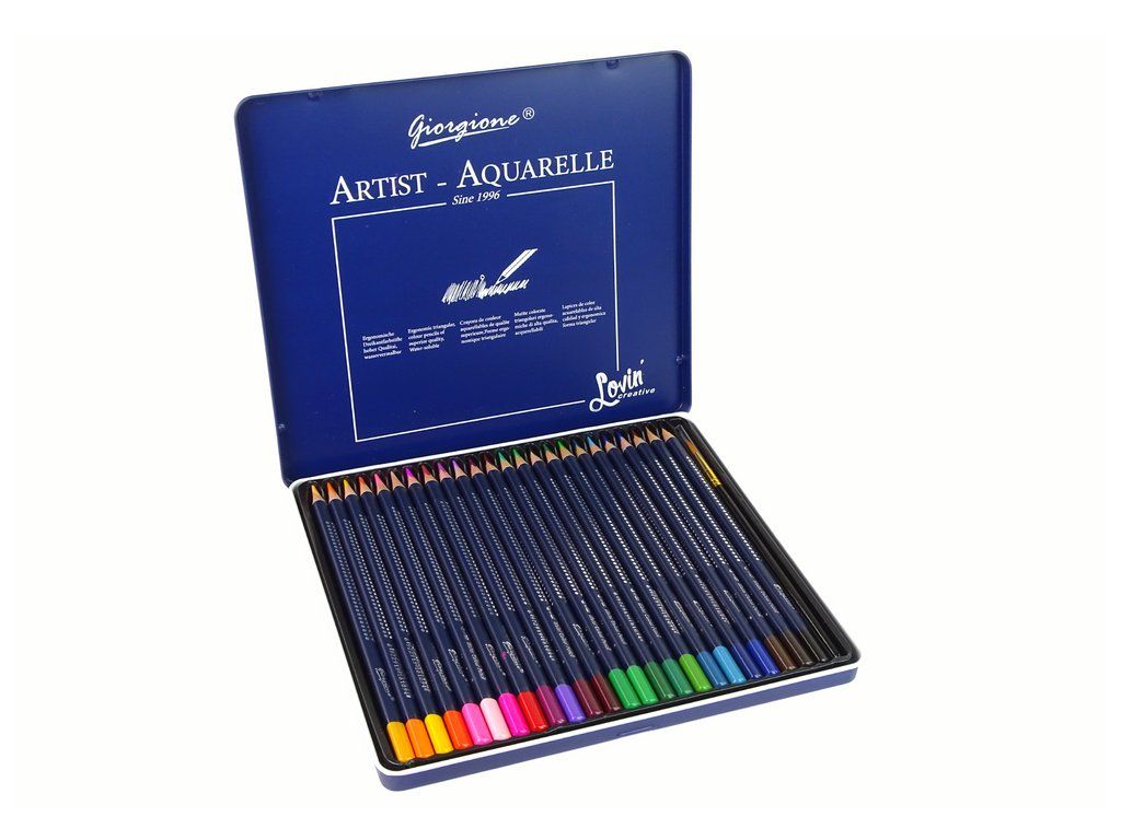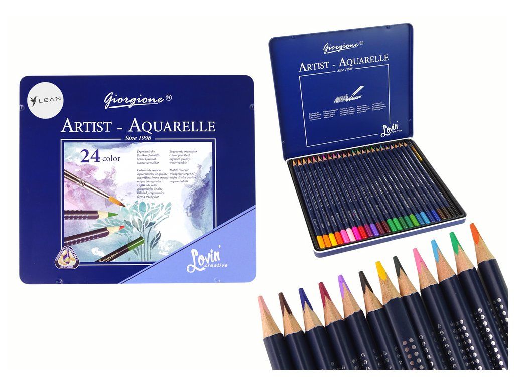 Sada 24 akvarelových pastelek v elegantní, tmavě modré kovové dvoupatrovém pouzdře je perfektní pomůckou pro milovníky malování a kreativity. Každá pastelka je dlouhá 17 cm a obsahuje intenzivní barvy, které oživí vaše výtvory.