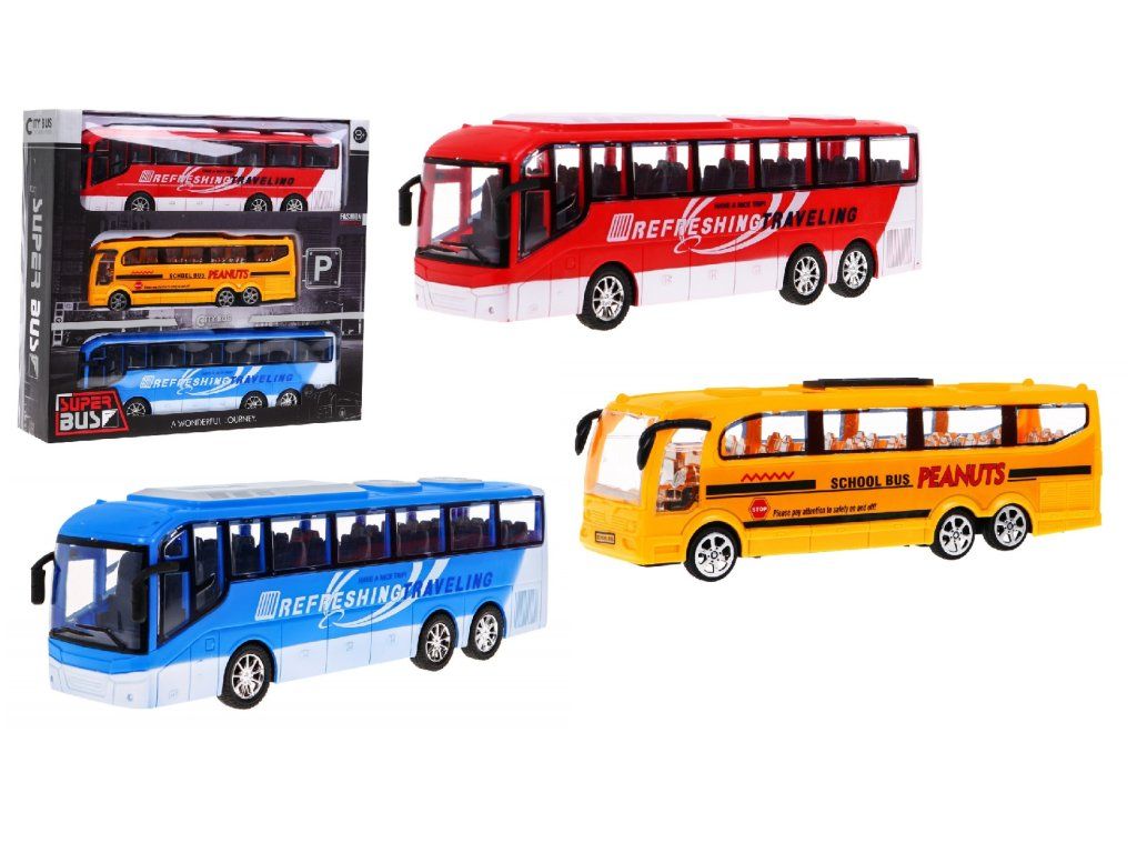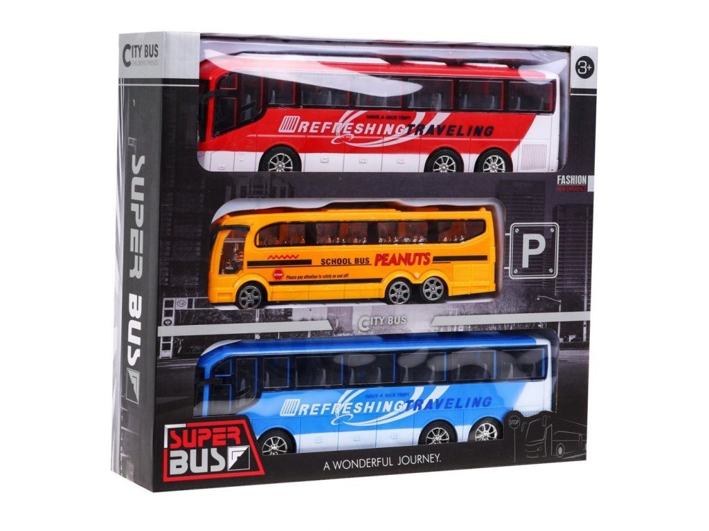 Sada tří autobusů je skvělý dárek pro všechny děti. Každý autobus je vybavena pohonem zadních kol.