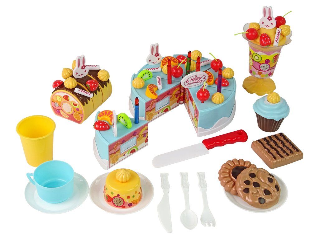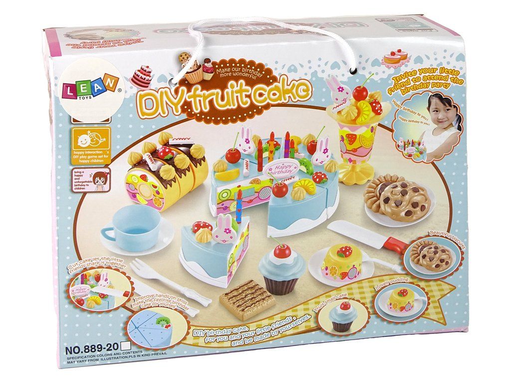 Sada obsahuje také spoustu dekorací v podobě pusinek, různého ovoce, svíček a topperů.