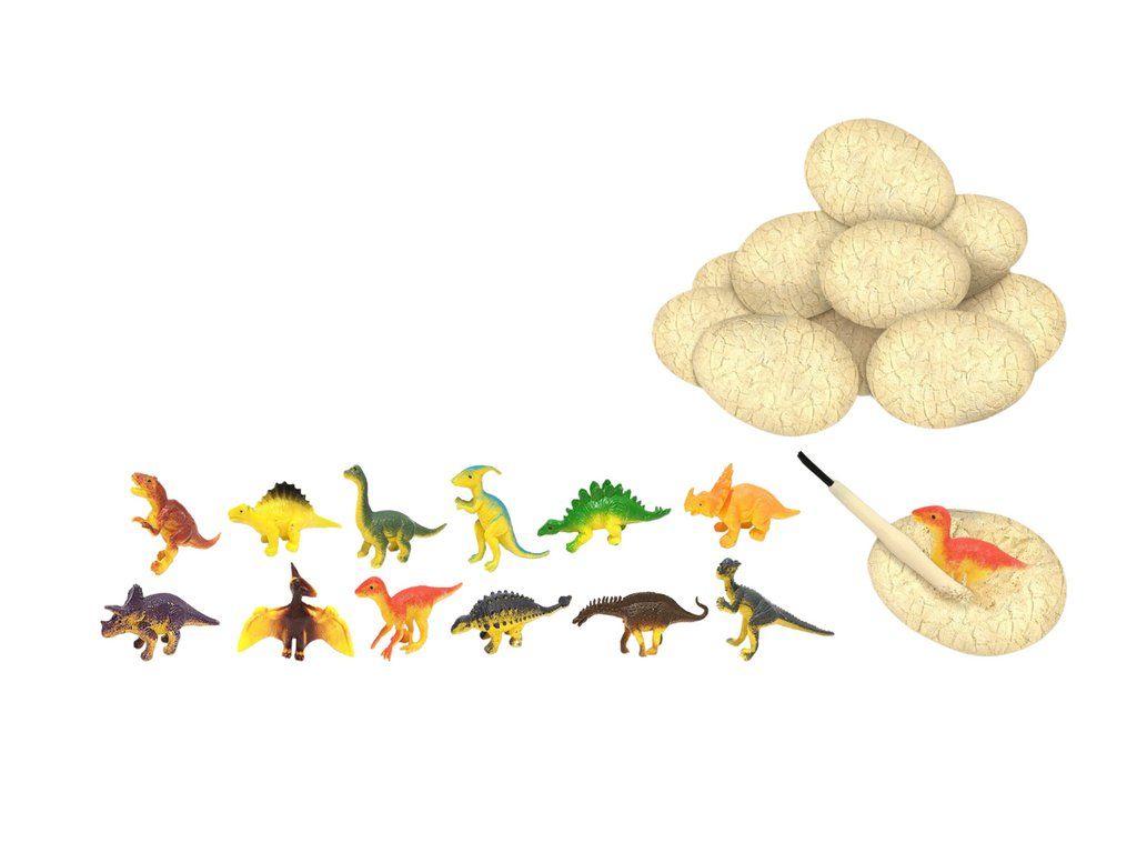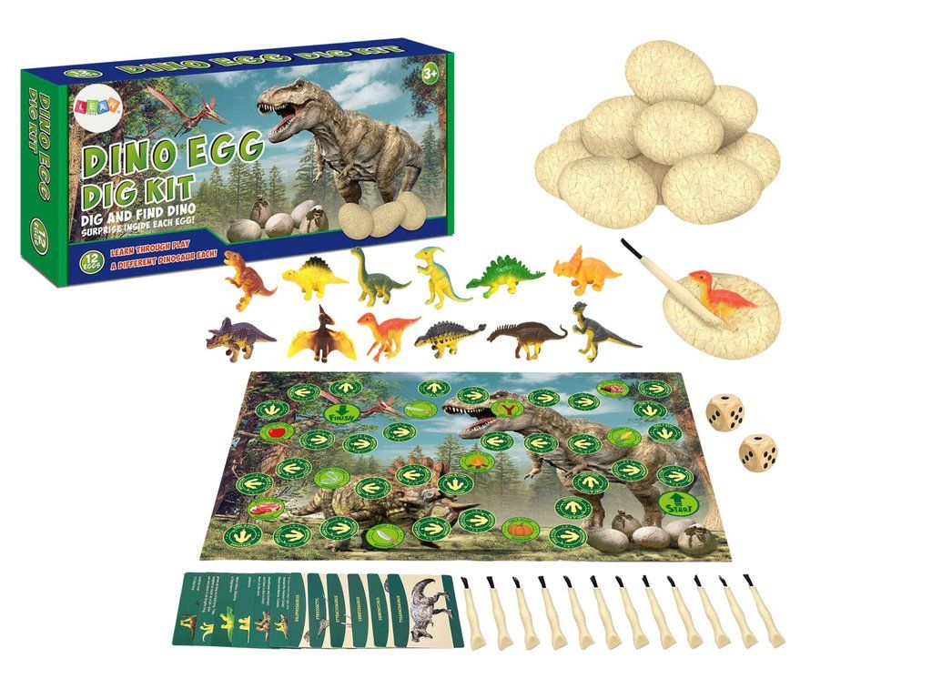 Sada dinosauří vejce a desková hra spojuje zábavu s učením. Děti objevují dinosauří figurky ukryté ve 12 vejcích pomocí nástrojů, jako jsou kladívko a štětec. Skvělá aktivita rozvíjející trpělivost, jemnou motoriku a zájem o paleontologii. Po vykopávkách využijí figurky při přiložené deskové hře.