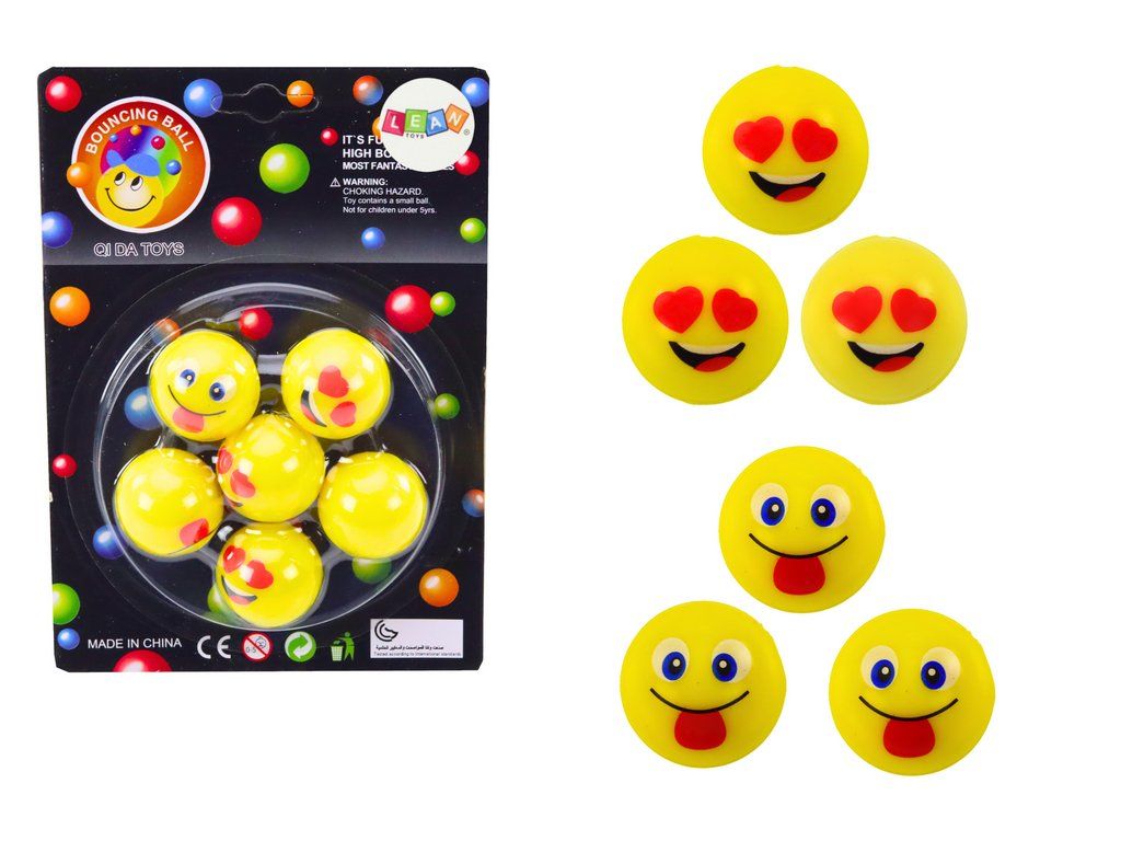 Sada šesti kaučukových míčků vykouzlí úsměv dětem i dospělým. Každý míček září energickou žlutou barvou a je ozdoben veselým emoji motivem, roztomilé obličeje s vyplazeným jazykem a očima ve tvaru srdíček přinášejí radost do každé hry. Vyrobeny z kvalitního kaučuku, míčky vynikají skvělou pružností a silnými odrazy, takže jsou ideální jak pro domácí, tak venkovní zábavu. Díky kompaktnímu rozměru se snadno skladují a můžete je vzít kamkoliv, abyste měli zábavu vždy po ruce.