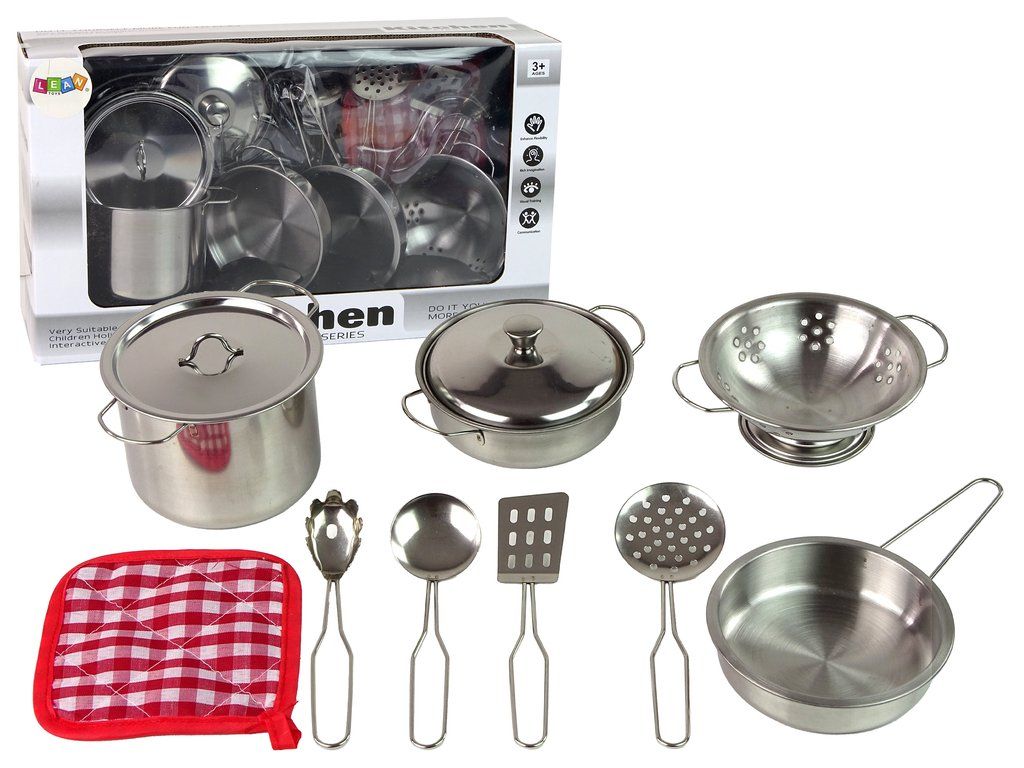 Naše sada kovových hrnců a kuchyňských doplňků je ideální hračka pro malé kuchaře. V této sadě najdete vše, co je potřeba pro napodobování úžasných kulinářských scén.