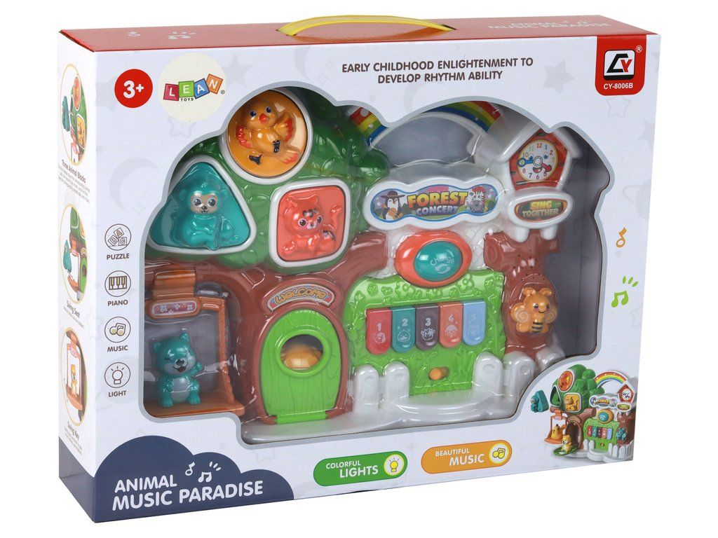 Na koruně stromu se nachází panel pro výuku, který probouzí smysly dětí. Když dítě stiskne tlačítka s motivy kočky, ptáka nebo opičky, každý z nich vydá charakteristické zvuky. Tato interaktivní část přispívá k rozvoji sluchových schopností a koordinačních dovedností.