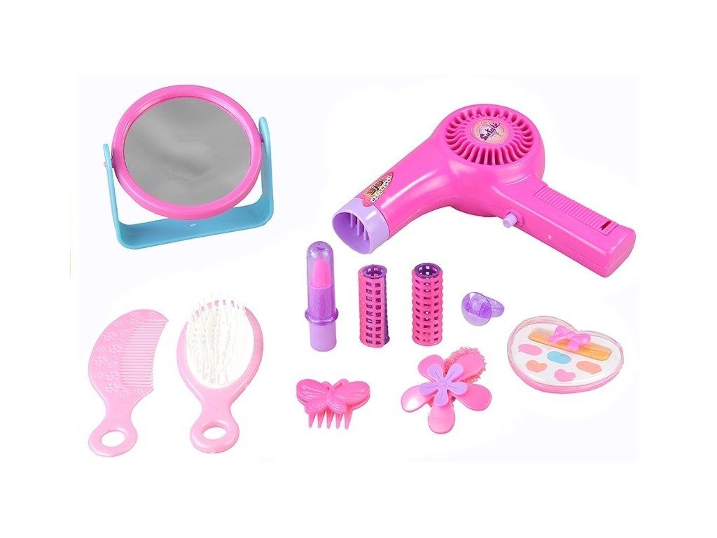Fén na vlasy je napájen 1 baterií typu AA 1,5 V, která není součástí balení. Po vložení baterie a stisknutí tlačítka hračka vysouší vlasy velmi lehkým proudem vzduchu a přitom vydává charakteristický zvuk. Set je vyroben z pevného, odolného plastu. Konstrukce hraček je bez špičatých a nebezpečných konců, přesto dokonale napodobuje vzhled opravdových předmětů.