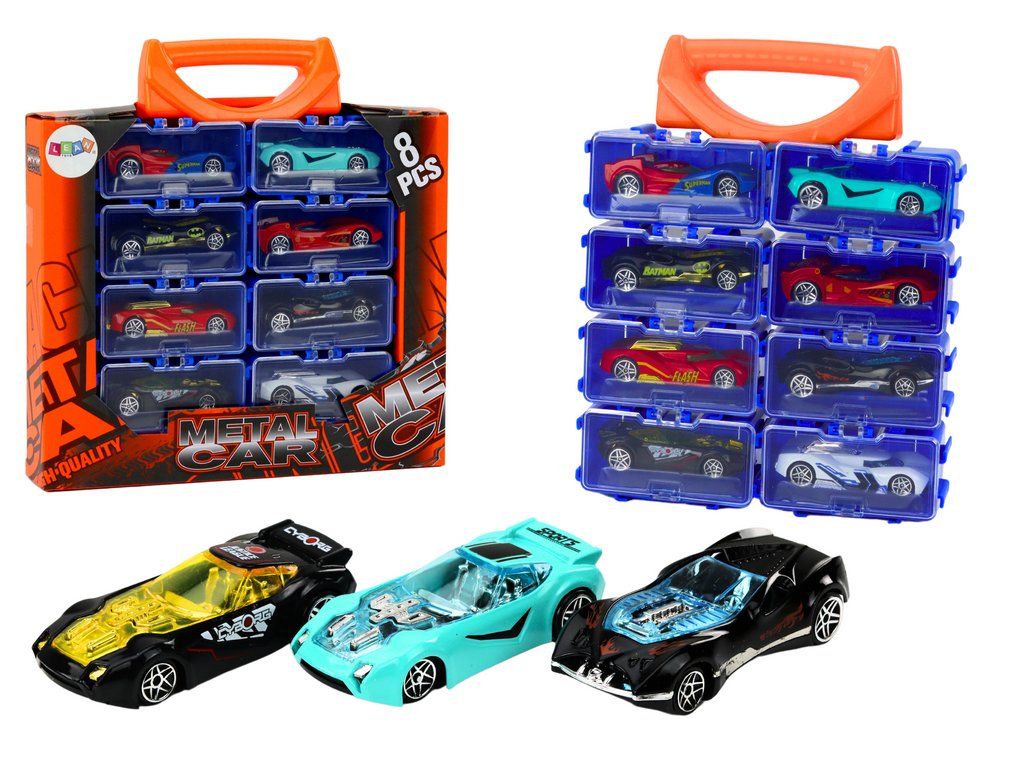 Všechna autíčka jsou pečlivě zabalena v praktickém kufříku, který je nejen estetický, ale i funkční. Kufřík je vybaven pevnou rukojetí, díky které dítě může své oblíbené hračky snadno přenášet kamkoli chce. Vnitřek kufříku obsahuje přihrádky, které zajišťují, že každé autíčko má své místo. Přihrádky jsou uzavíratelné, což zabraňuje pohybu autíček během přepravy.